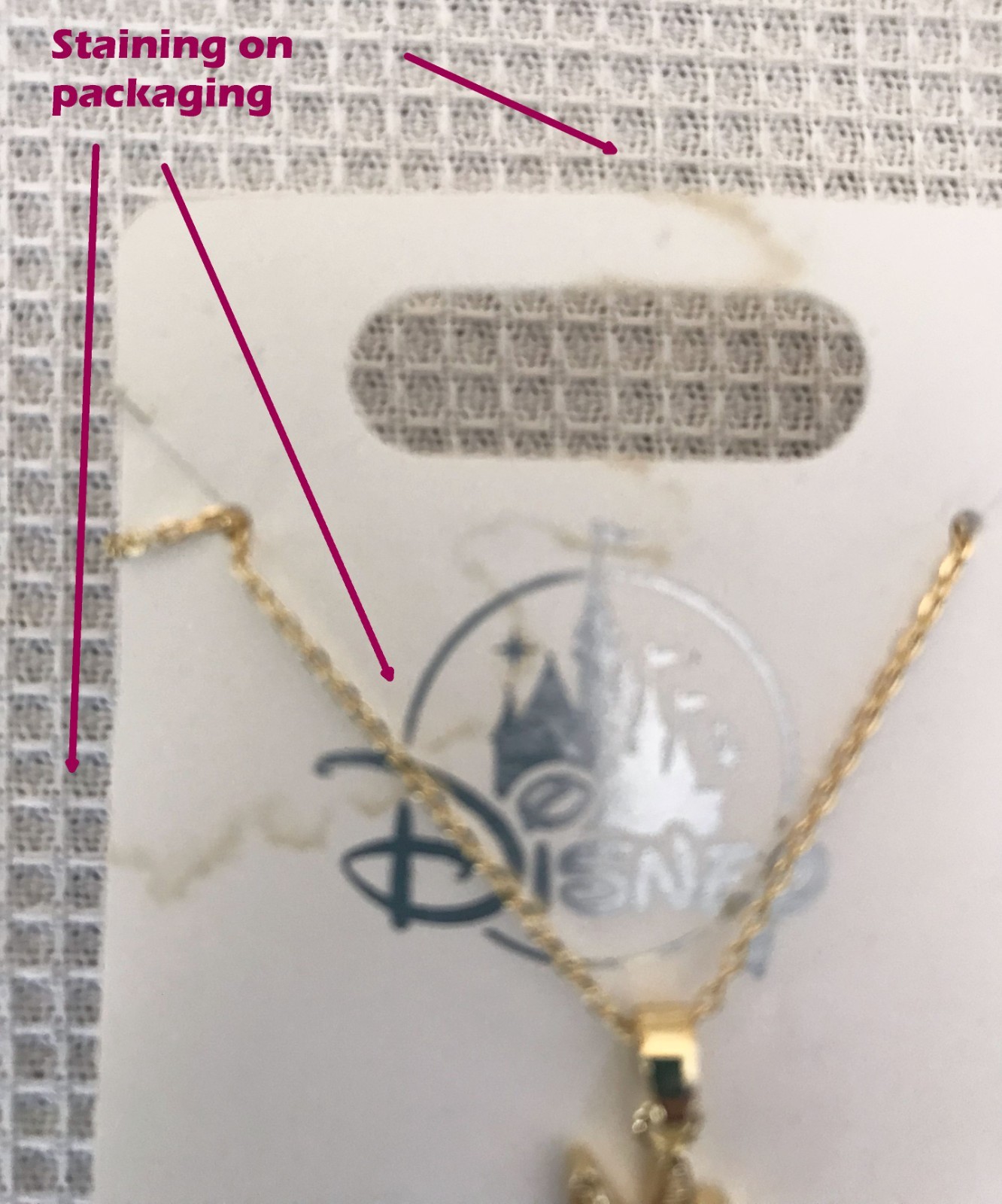 Disney Parks Tinkerbell Gold Toned Necklace, New in stained packaging
