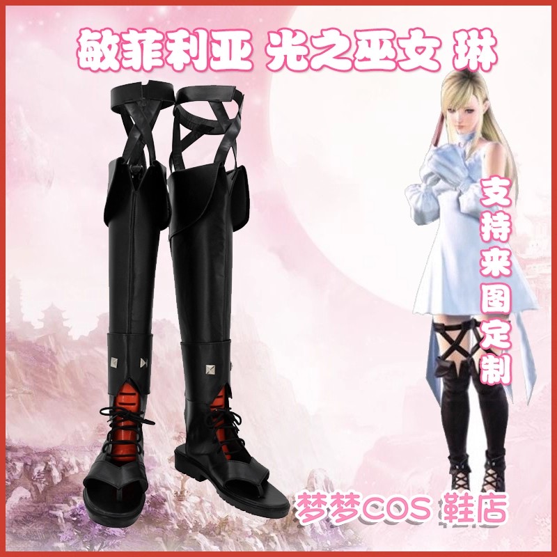 Final Fantasy XIV FF14 Minfilia Boots Cos Props Black Open-toed Knee-high Shoes