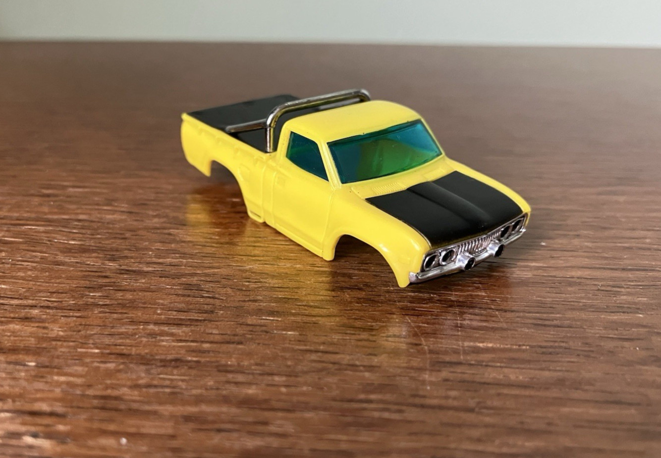 RARE AFX Solid Yellow Datsun Baja Pickup Truck, Vibrant Paint, Straight Posts