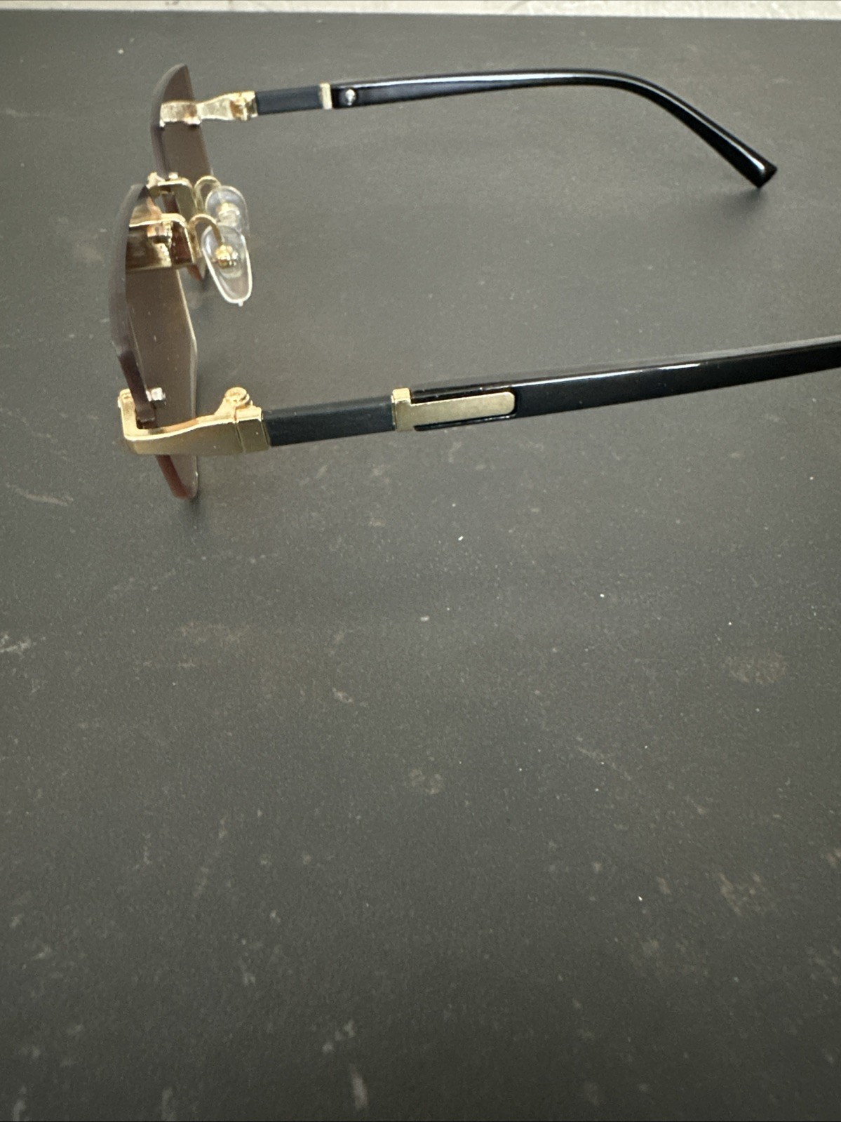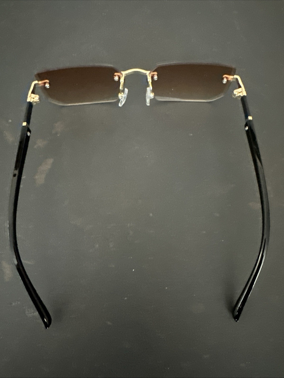 как выглядит Frameless Luxury Style Sunglasses-Bronze Tint Lenses W/ Gold Details Unisex Vibe фото