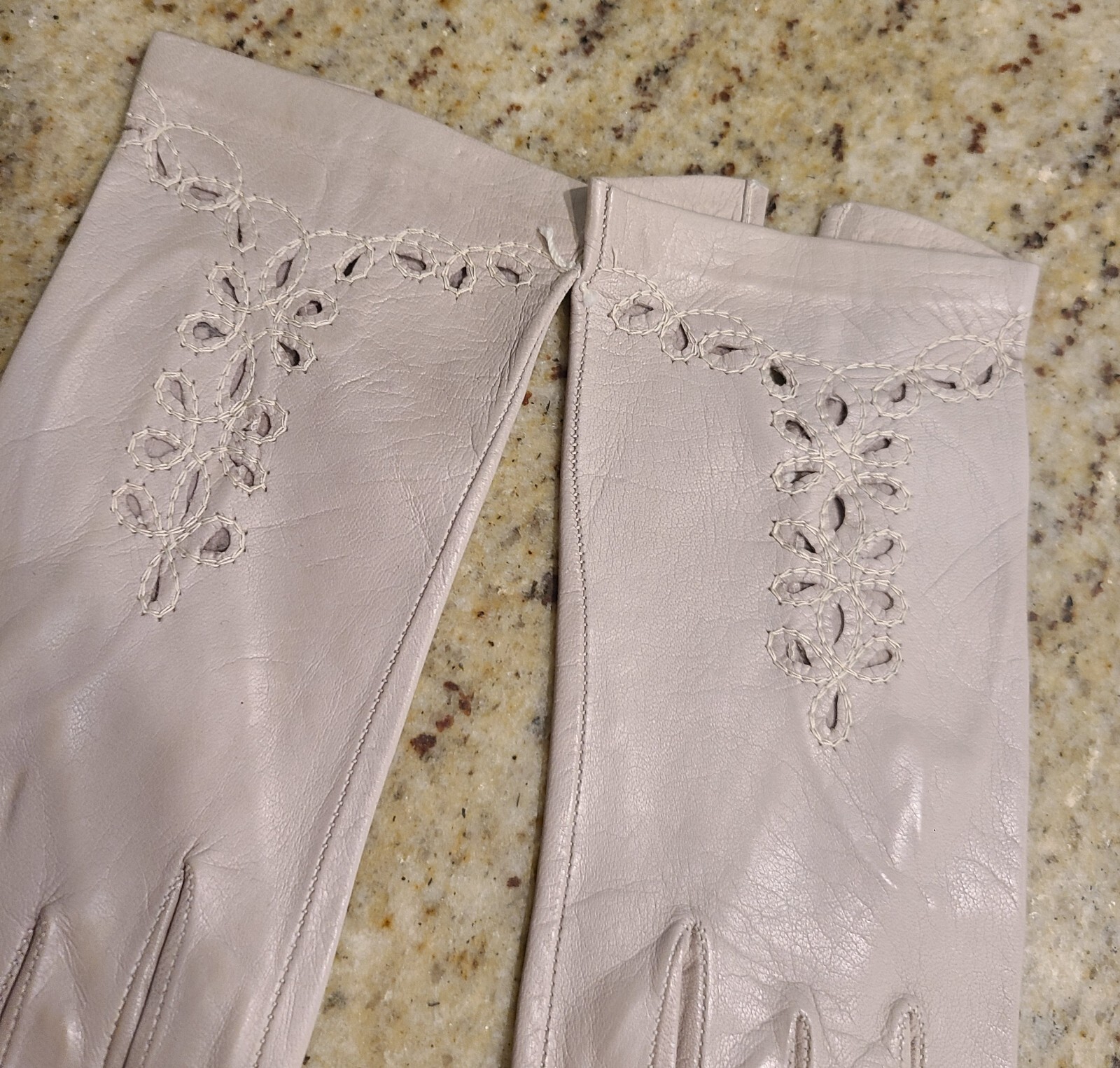 как выглядит New Vintage Womens Size XS 6 Beige Soft Leather Formal Gloves Eyelet Flower фото