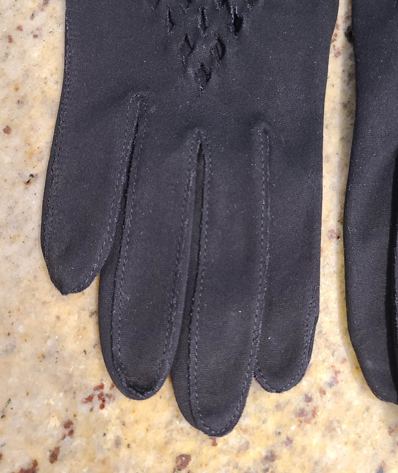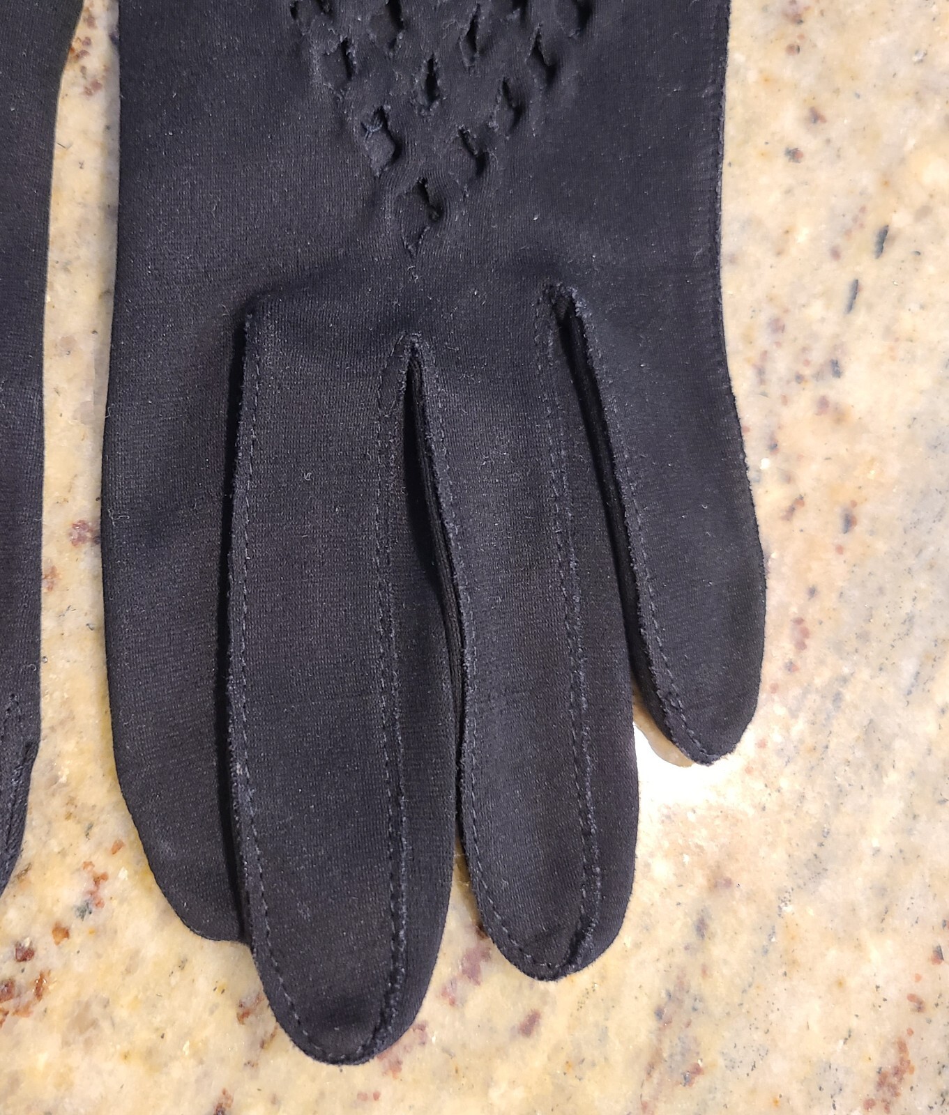 как выглядит Vintage Size S Black Stretch Cotton Formal 7.5" Gloves Mesh Cutout Geometric фото