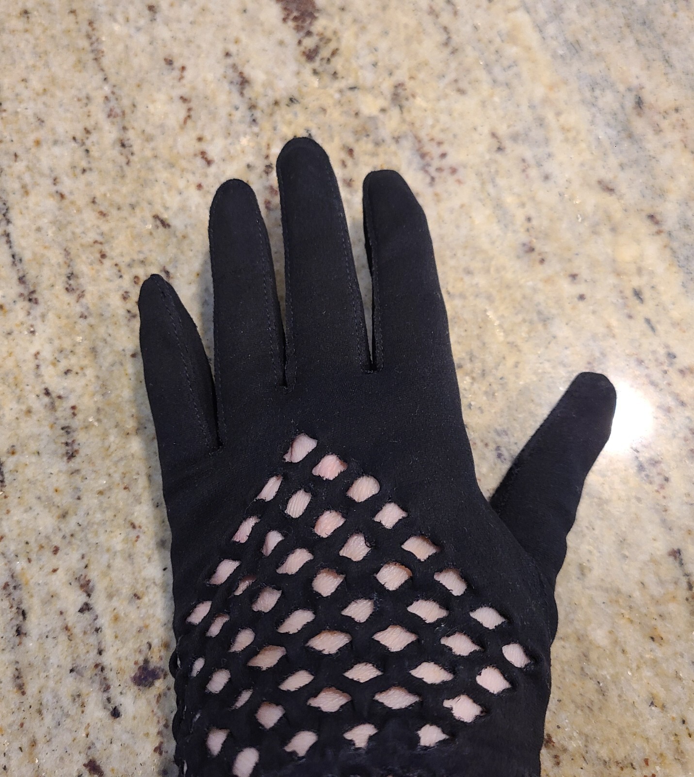 Vintage Size S Black Stretch Cotton Formal 7.5 Gloves Mesh Cutout Geometric