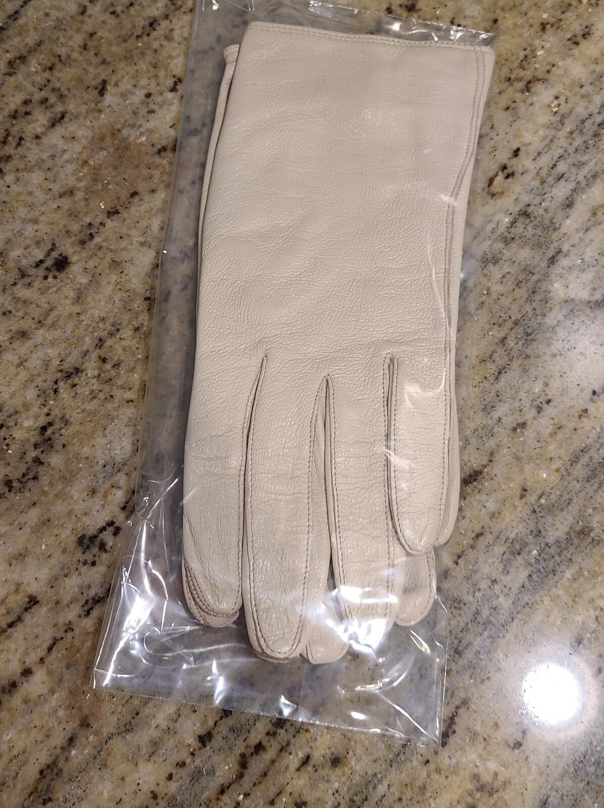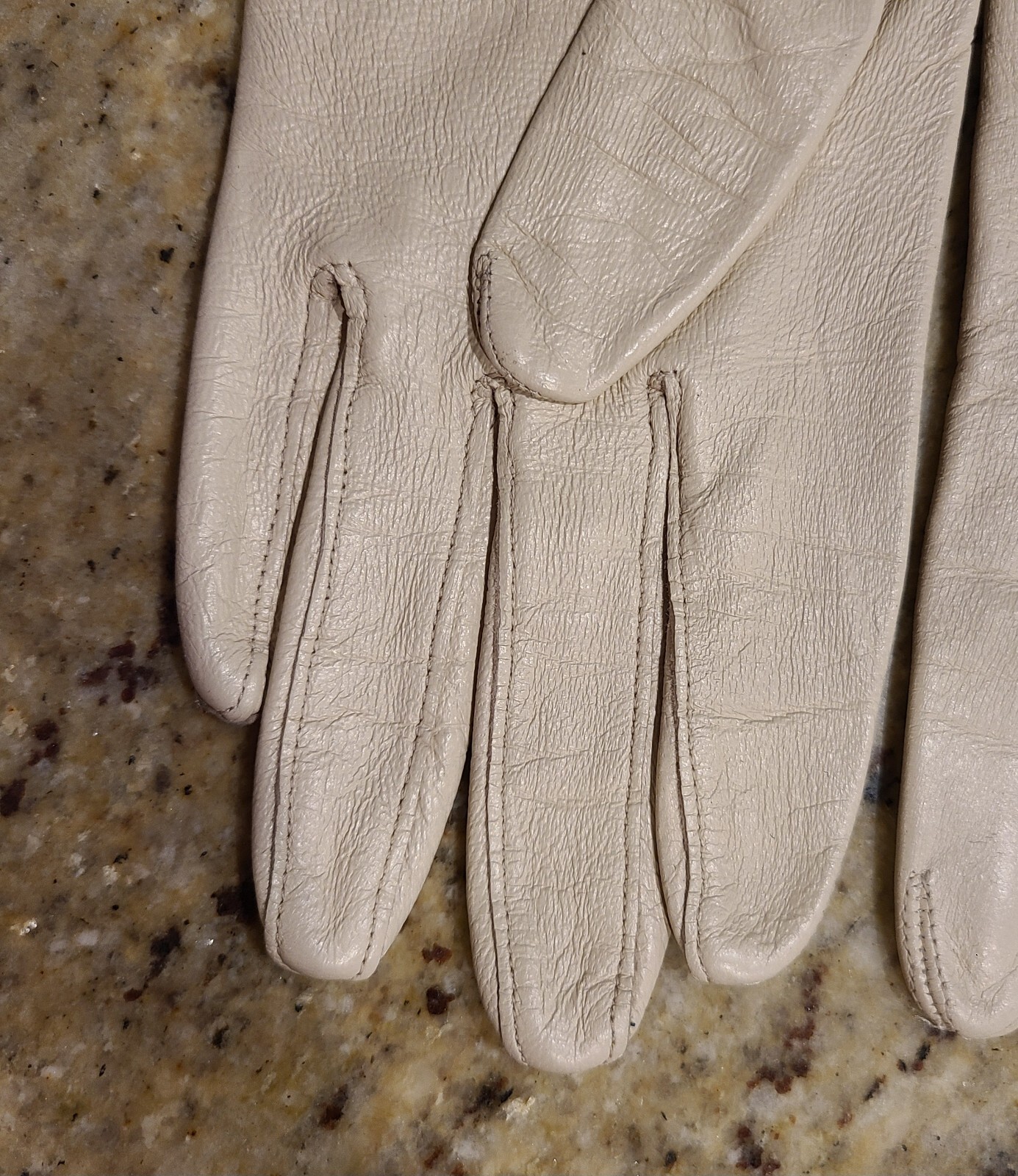 как выглядит Vintage Size S 6.5 Beige Leather 8" Gloves Wrist Buttons фото