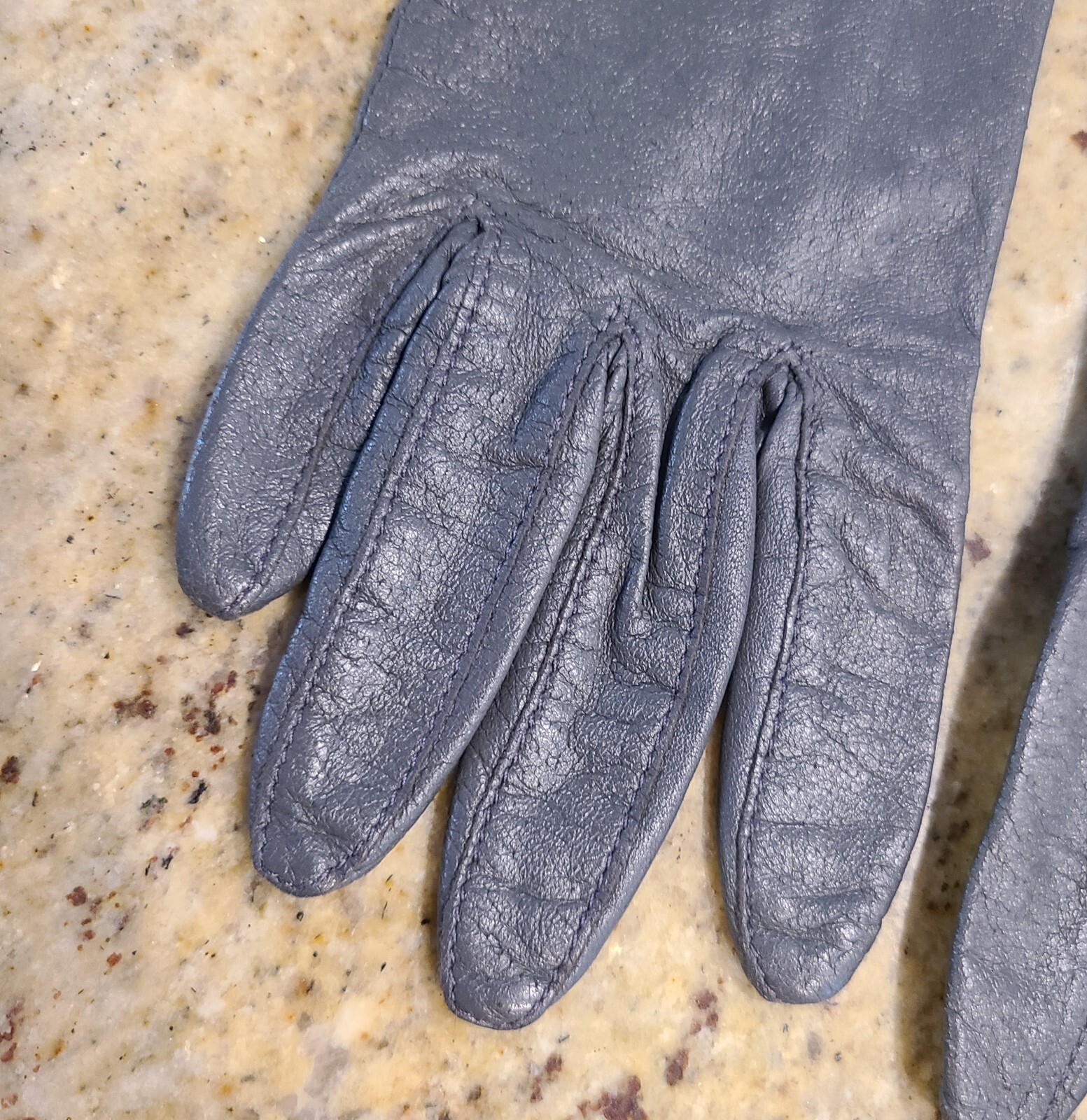 как выглядит Vintage Womens Size S 6.5 Gray Leather Lined 9" Long Gloves фото