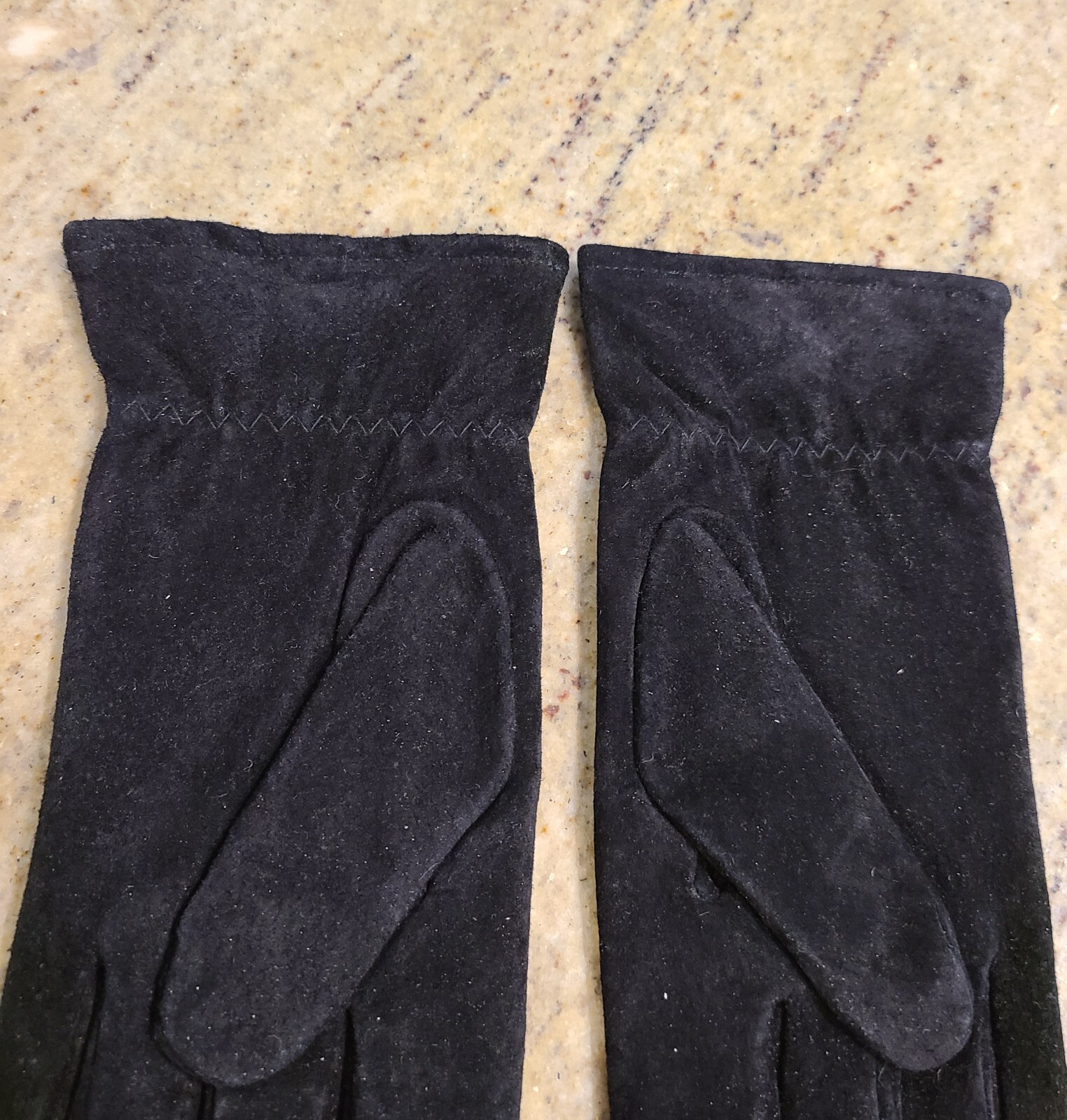 как выглядит Vintage Size M Black Suede Leather Knit Lined 9.5" Gloves фото
