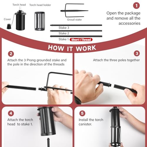 Citronella Torches Set of 4, 16 oz Garden Torches for Outside, 3-Prong Black
