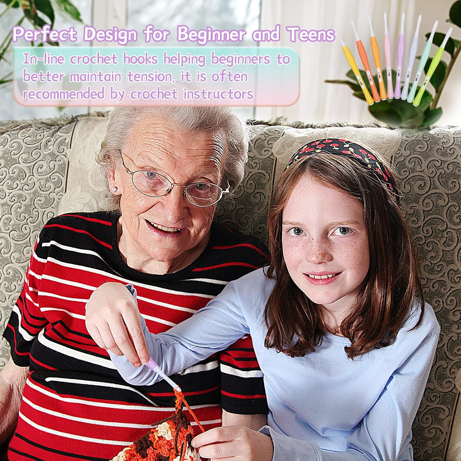 8 Pcs Inline Crochet Hooks Set, Ergonomic Non Slip Crochet Hook for Crocheting B