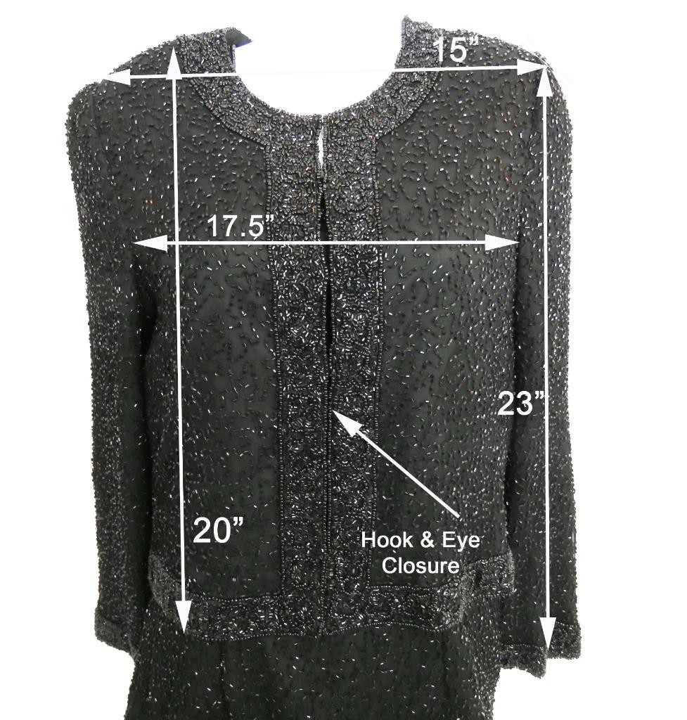 как выглядит Lawrence Kazar New York Evening Jacket Women Sz. M Beaded Black Silk LONG SLEEVE фото