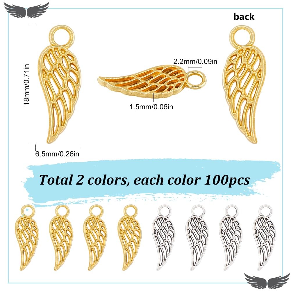 200Pcs Gold Silver Angel Wing Charms - Alloy Flight Celestial Small Feather...