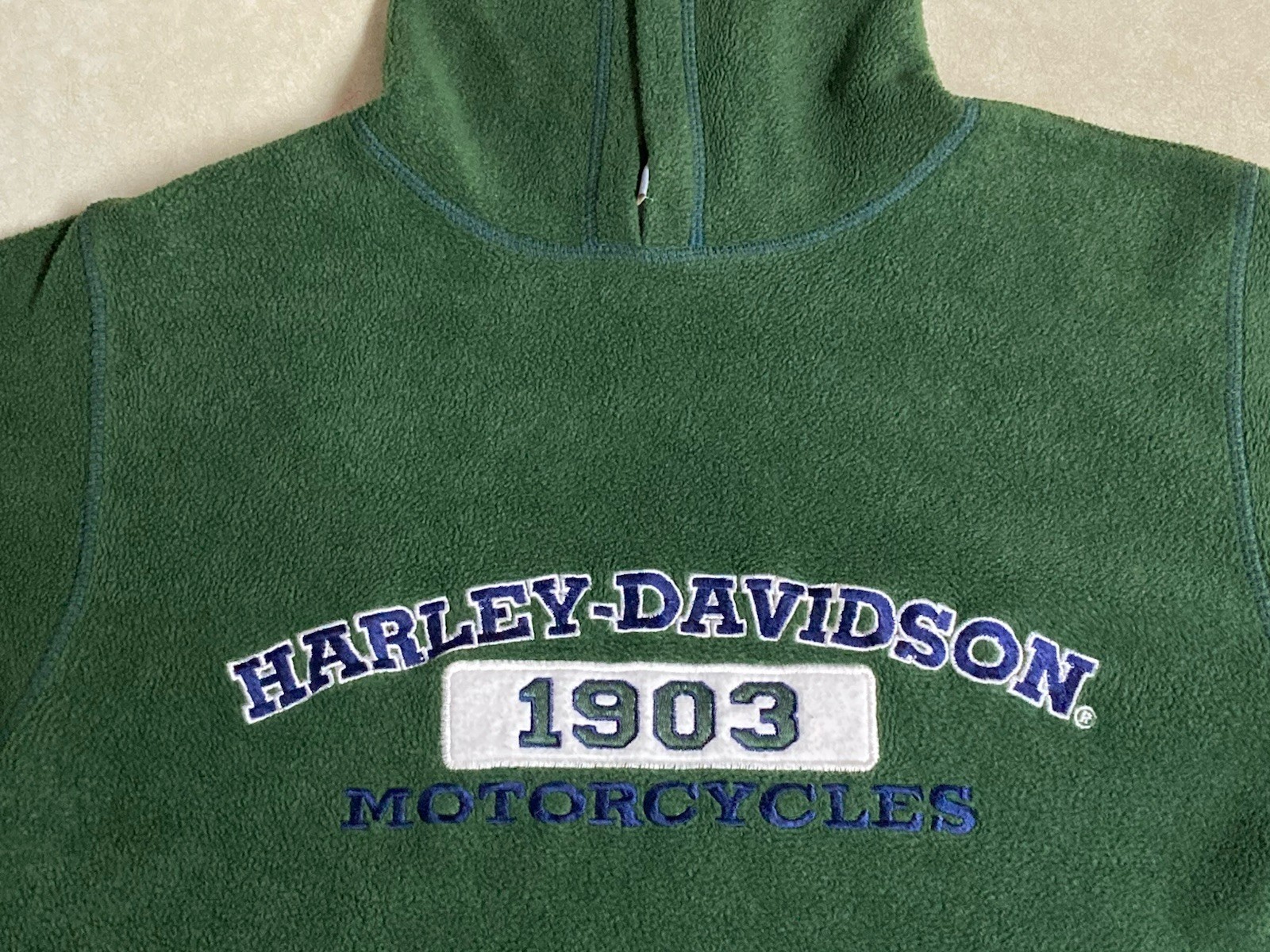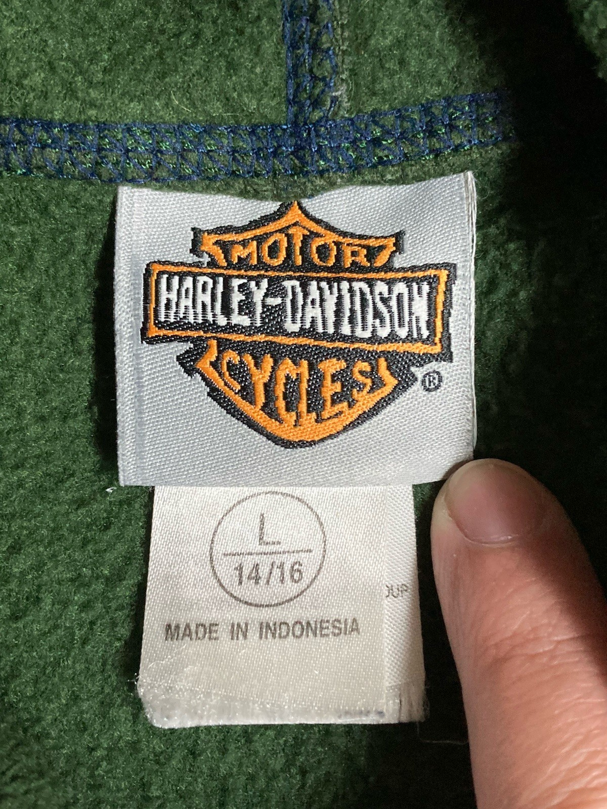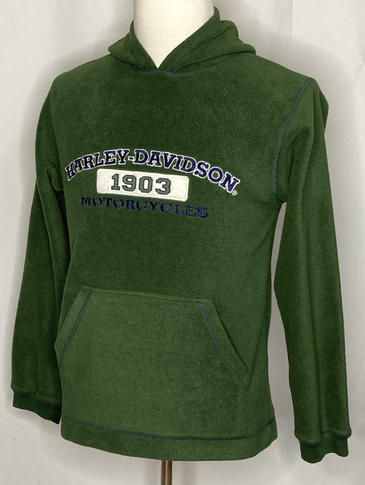 как выглядит Harley-Davidson Hoodie Fleece Youth Kids L 14/16 Kangaroo Pullover Green 1903 фото