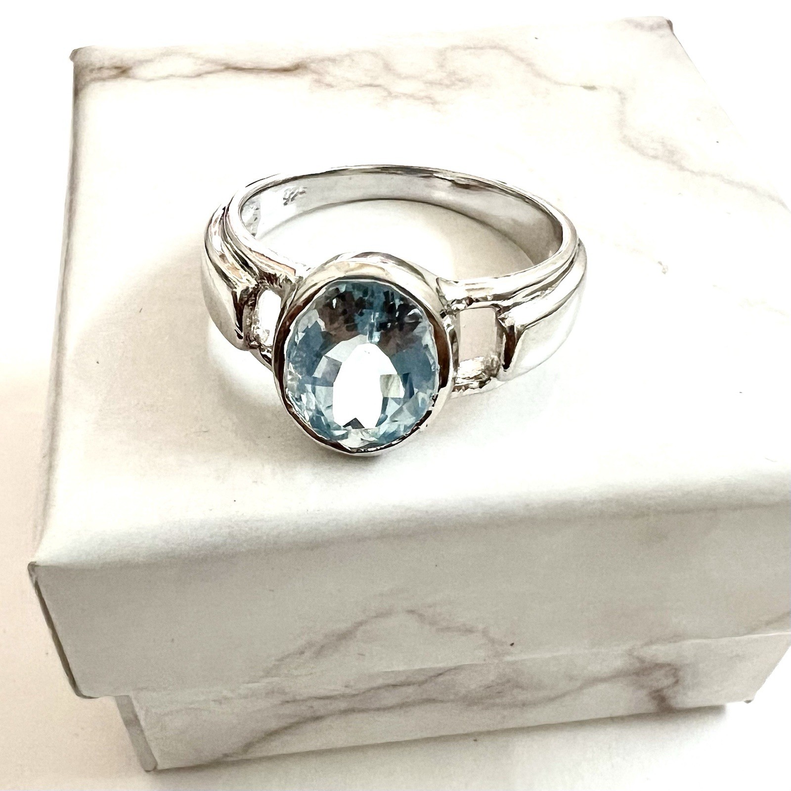Blue Topaz Solitaire Ring 925 Sterling Silver December Birthstone Gift for Her
