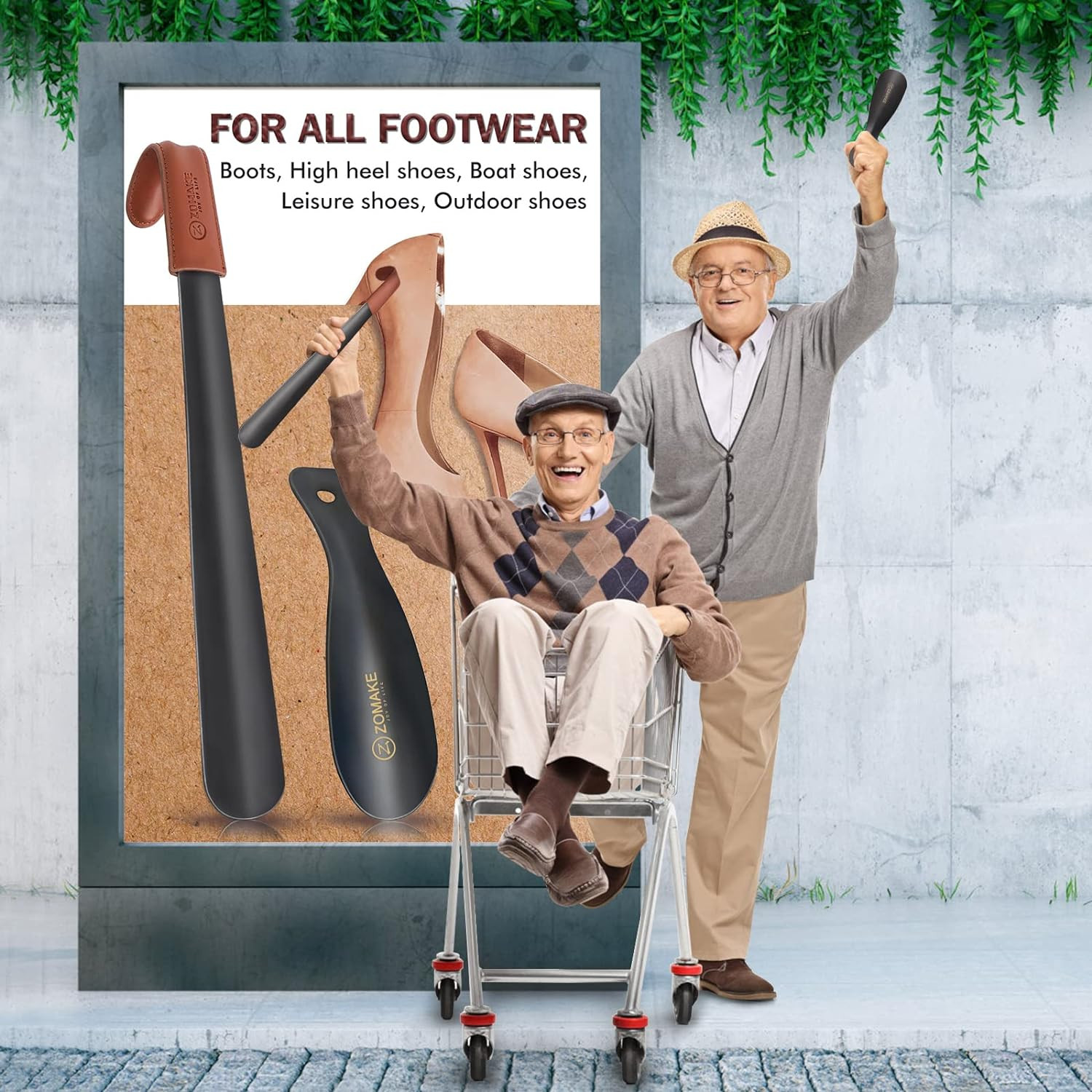 ZOMAKE Shoe Horn Long Handle for Seniors Men Women,Metal Long Shoehorn Boot Horn