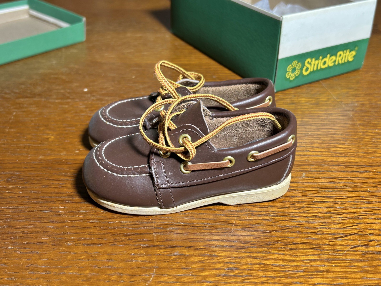 как выглядит VTG 1984 Stride Rite Baby Moccasin Walking Shoe Sz 5 D Original Box фото