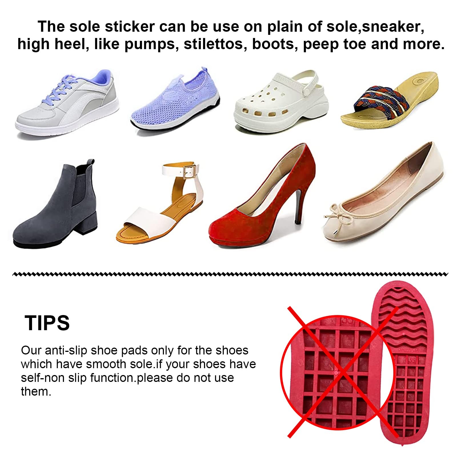 Recommended Uses For Product: Sneakers, High Heels, Flat Bottom Shoes