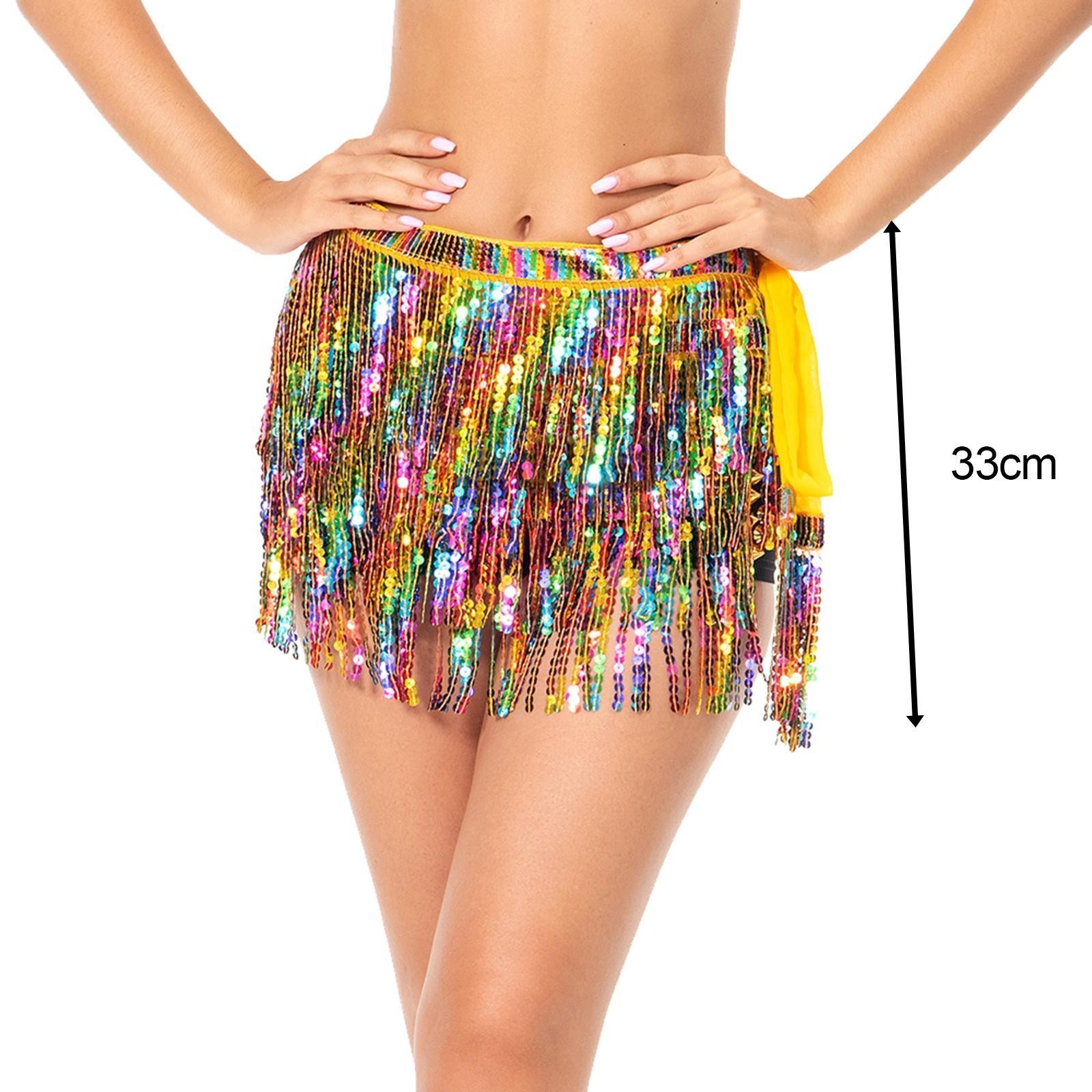 как выглядит Sparkly Hip Scarf Skirt Costume Wrap Skirts Fashion Sequin Tassel Skirt for фото