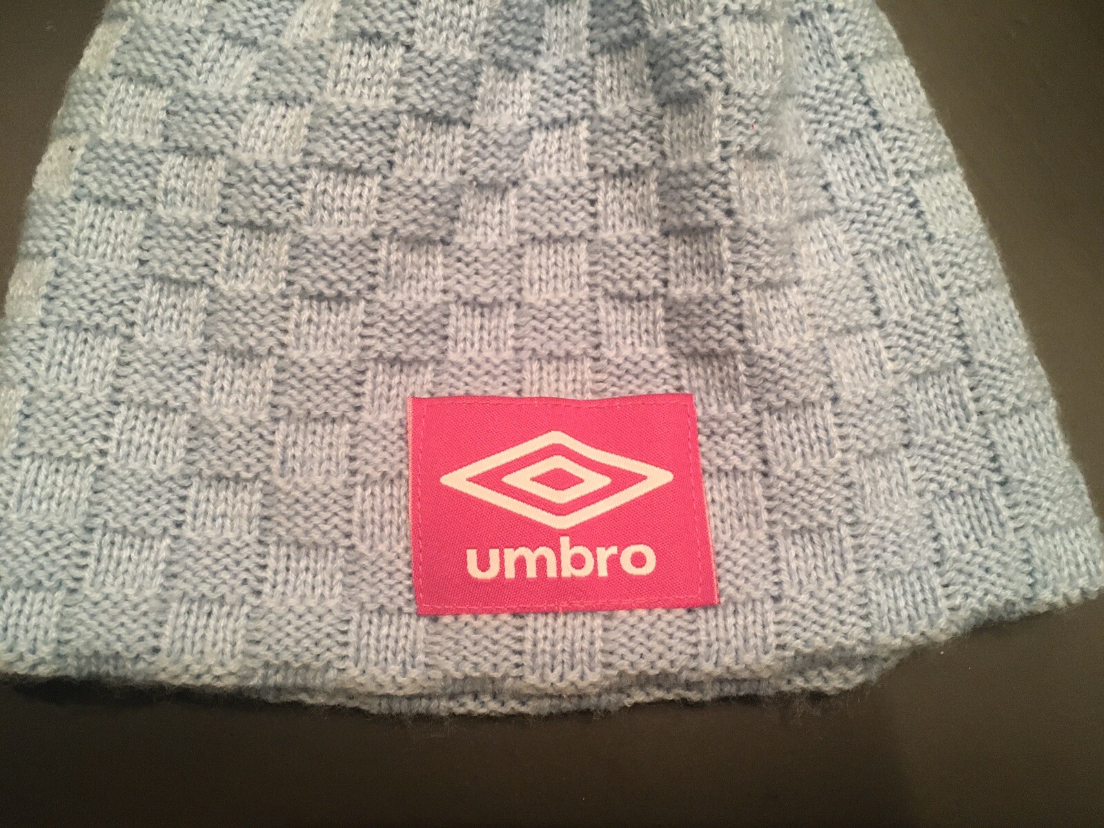 как выглядит Umbro Light Blue Knit Lined Outdoor Beanie Hat One Size Unisex фото