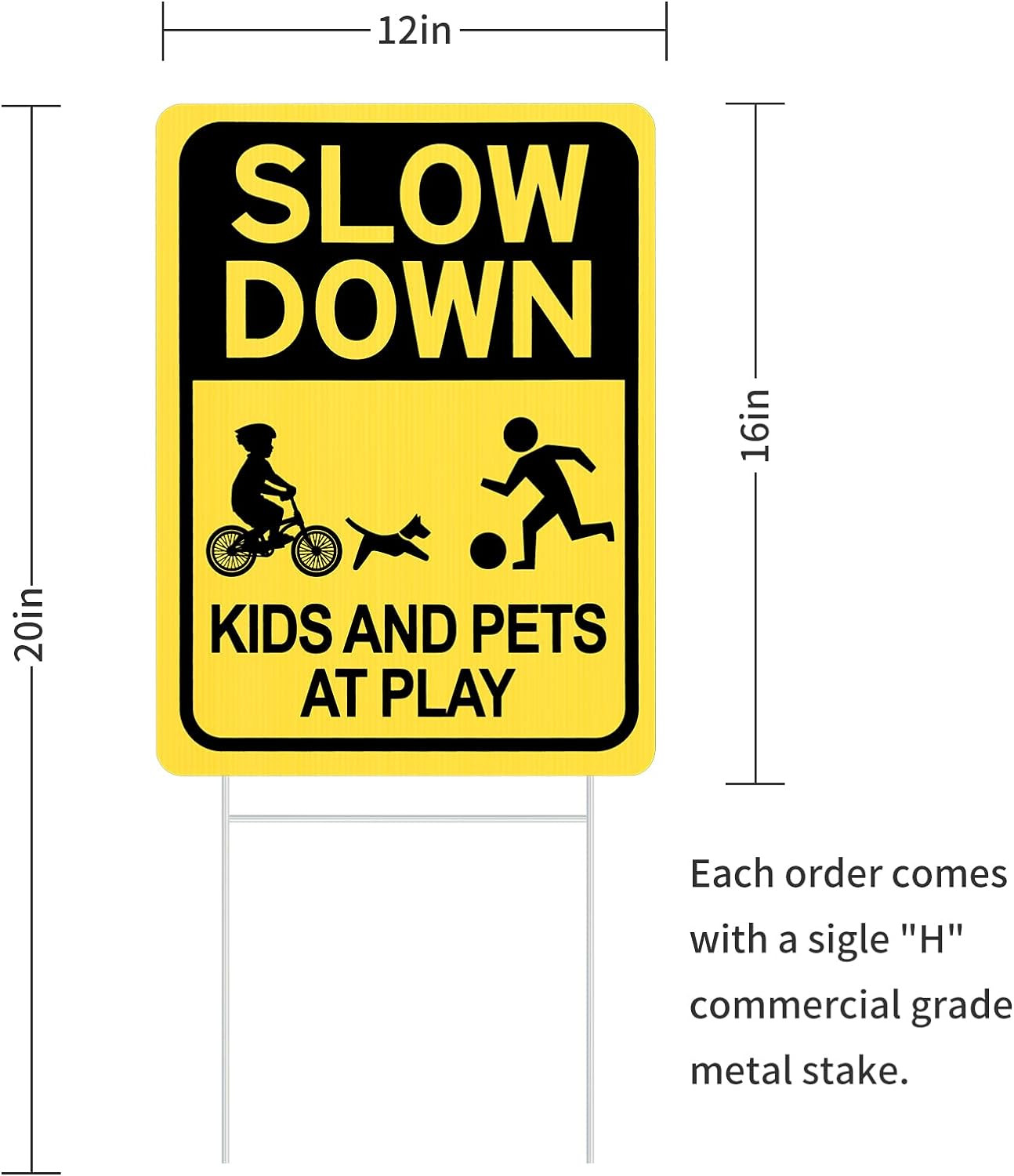 Slow down Double Sided Yard Sign, 16 X 12 Corrugated Plastic Child Safety Caut