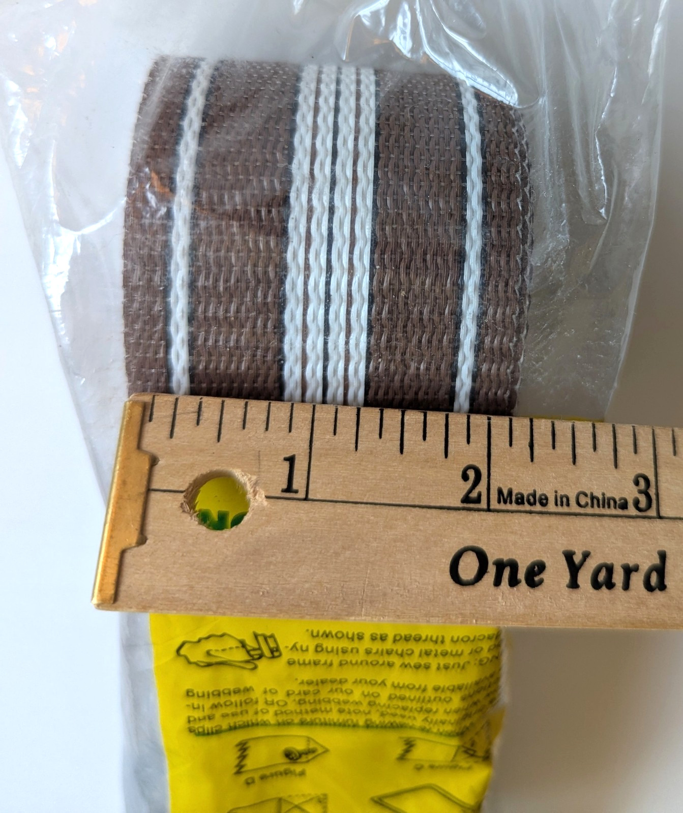 как выглядит Vtg 70s Wellington Lawn Chair Webbing Re-Web Kit Brown With White Stripes NOS фото