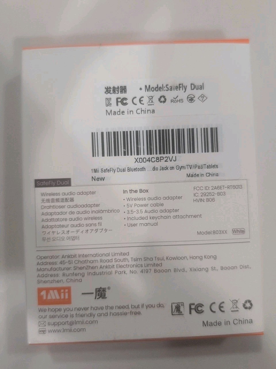 1Mii SafeFly Dual Bluetooth 5.3 Adapter Bluetooth Transmitter w/Screen