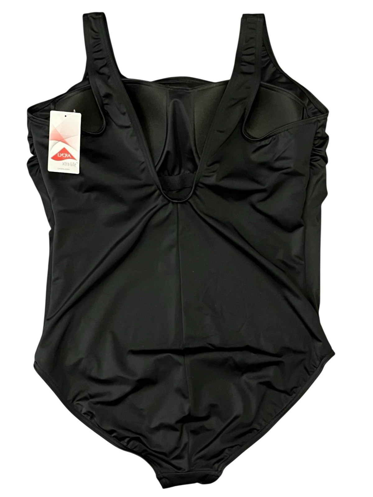 NEW Lands End Black High Leg Tugless Soft Cup One Piece Swimsuit, Women 22W
