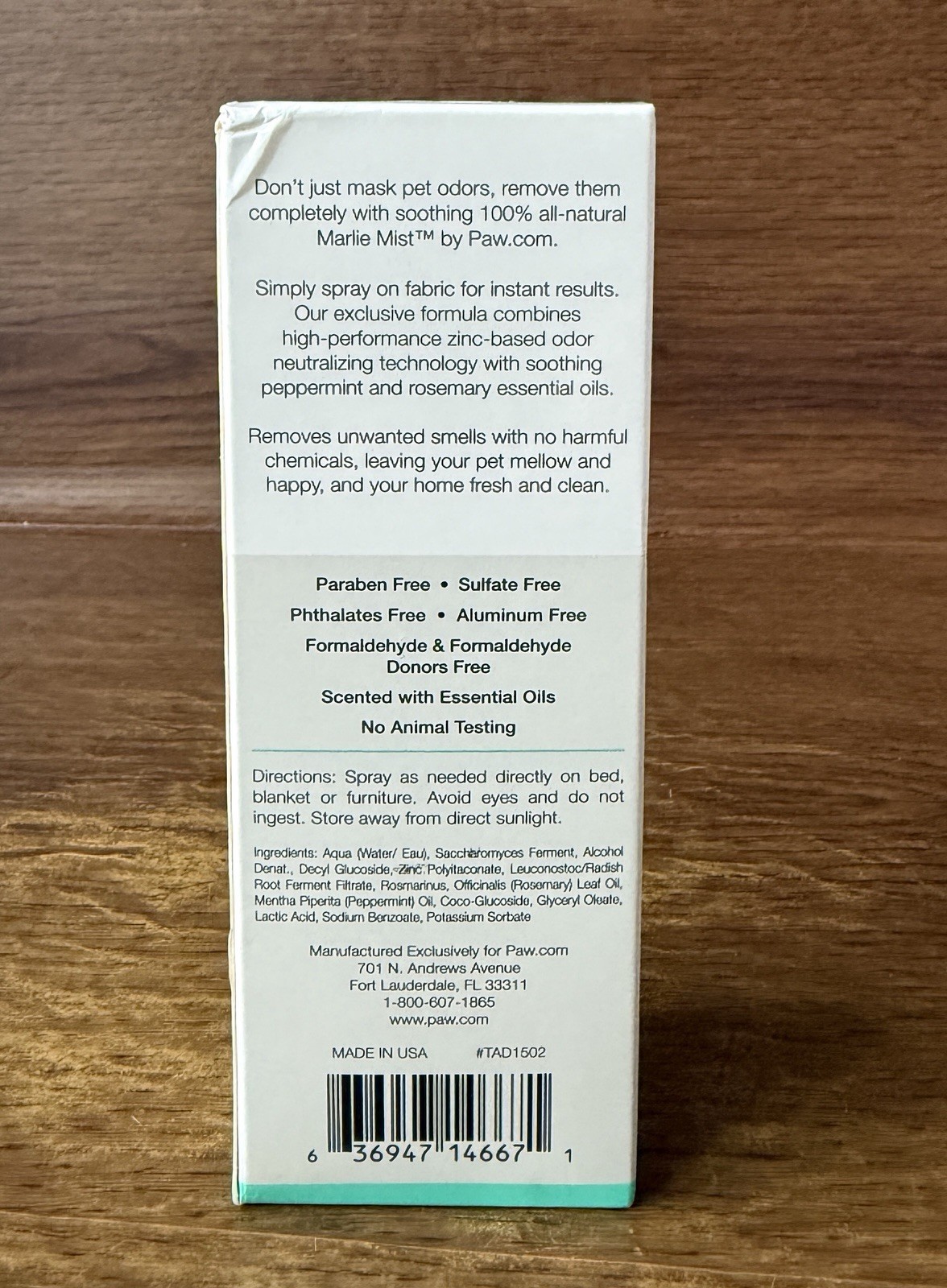 Marlie Mist Pet Odor Eliminator Spray Peppermint Rosemary Paw 6.7 fl oz New