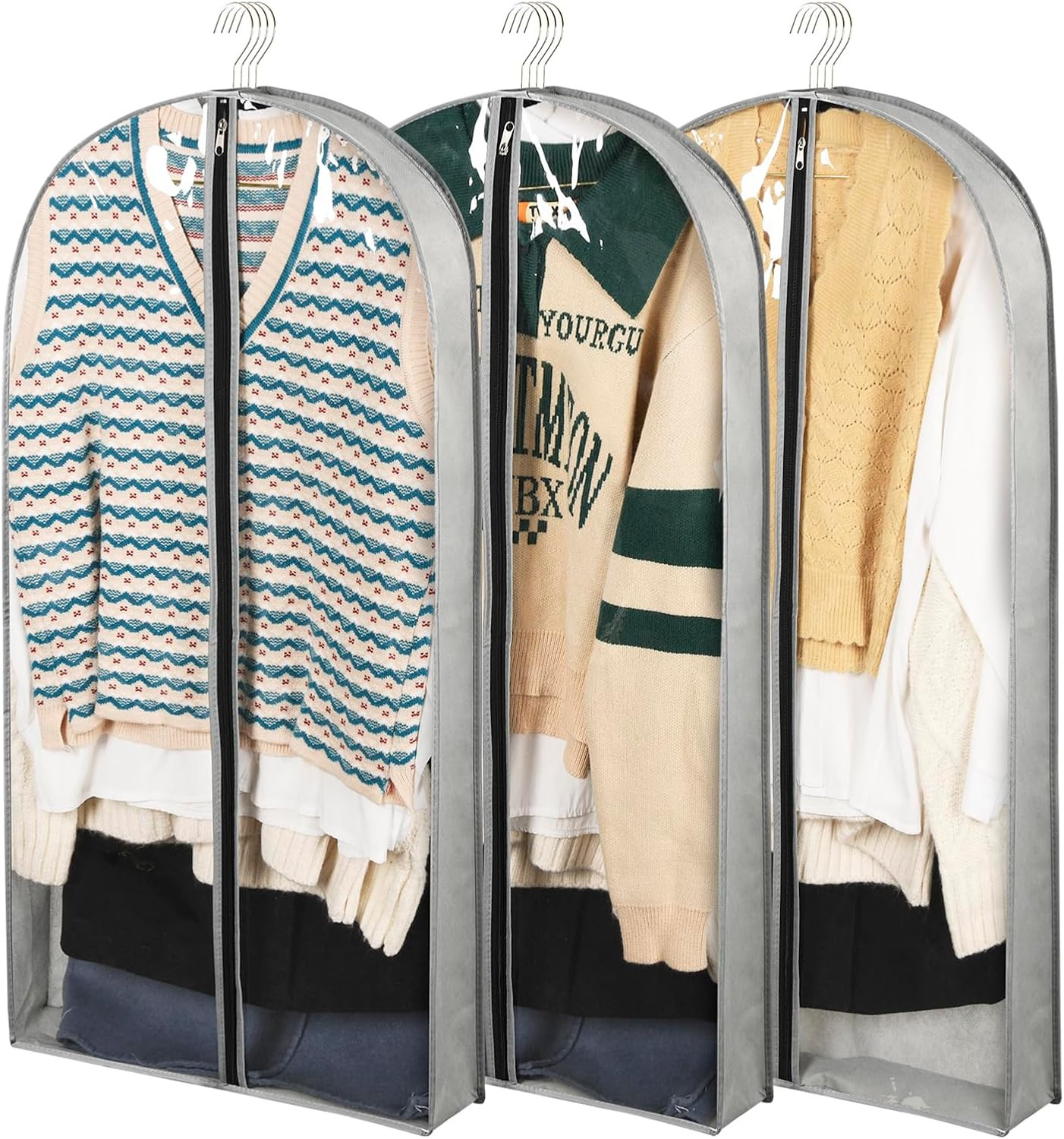3 Pack 40 Garment Bags for Hanging Clothes Storage, Clear Moth Proof Suits Cove