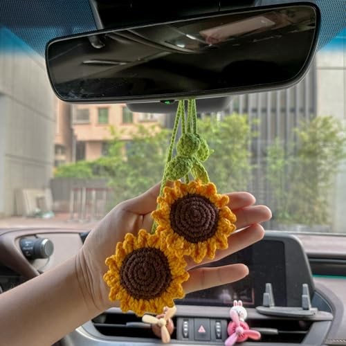 2 Pieces Handmade Sunflower Car Accessories Sunflower Pendants Car Mirror