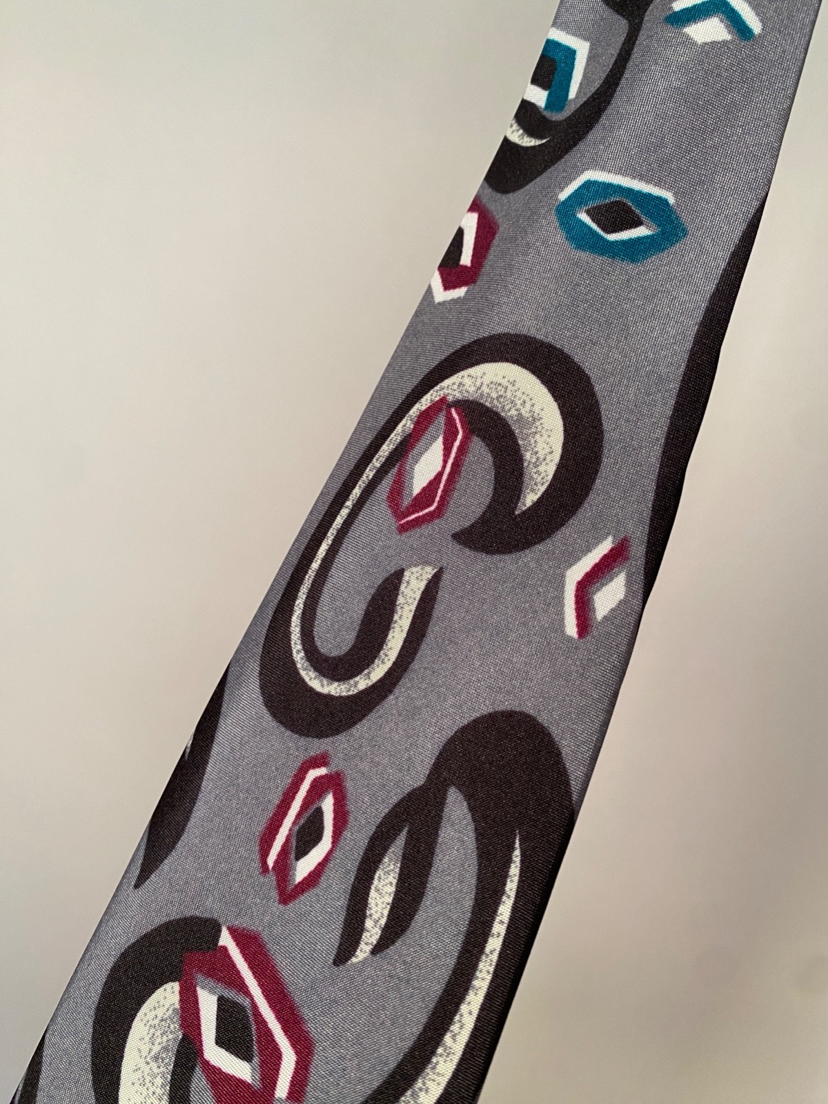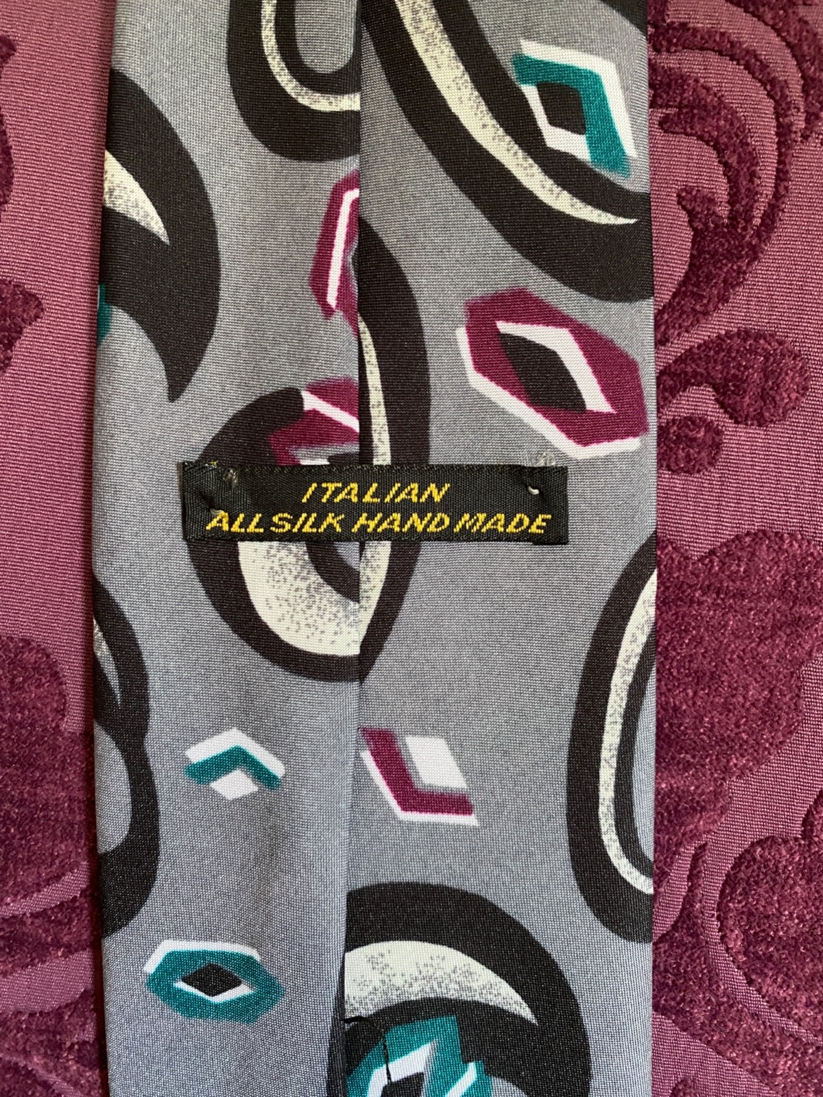 Handmade Italian Silk Tie Abstract Pop Art Bold Gray Multi Color Classic Length