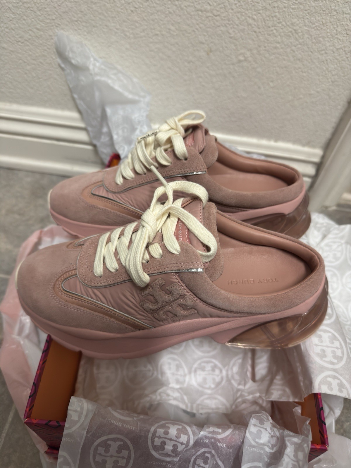 Tory Burch Good Luck Trainer Mule Nylon- Pink Moon Size 5.5 NIB