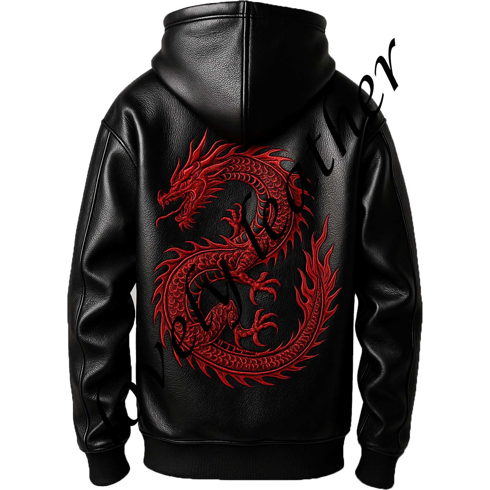 Men's Black Premium Leather Hoodie Handmade Genuine Lambskin Embroidered Jacket