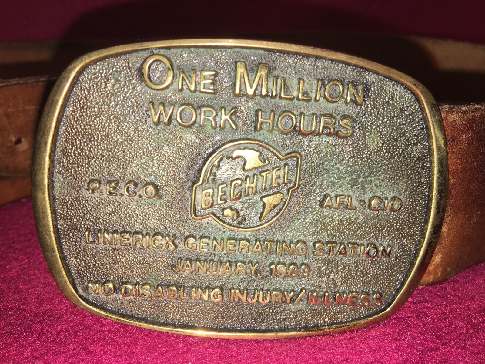 Genuine Leather Belt with Brass Buckle 1983 One Million Work Hours USA 44