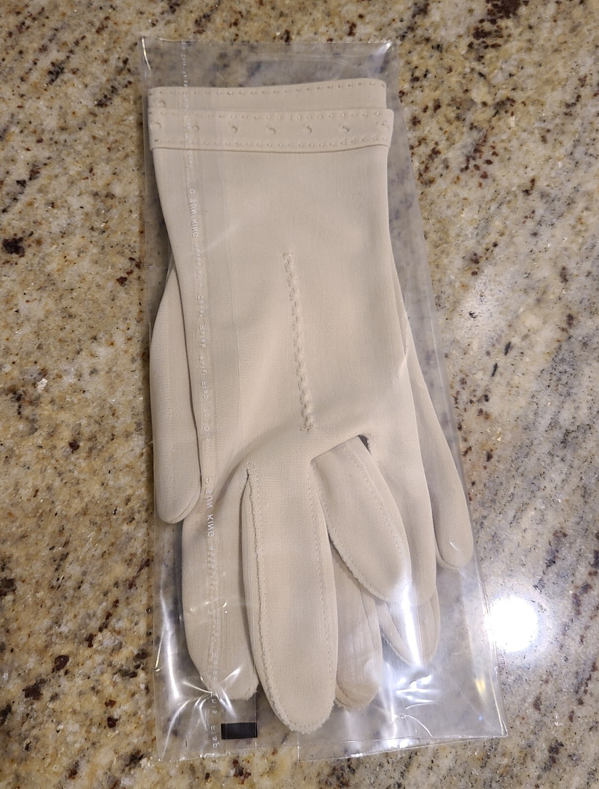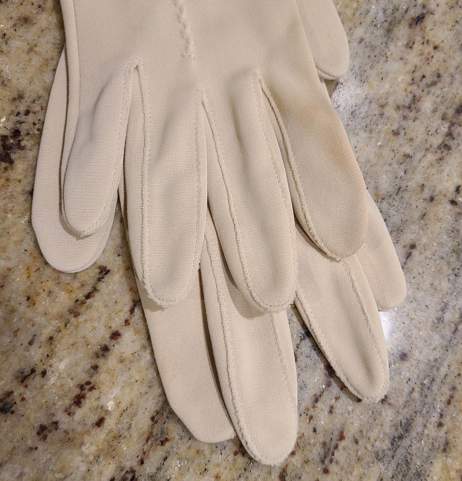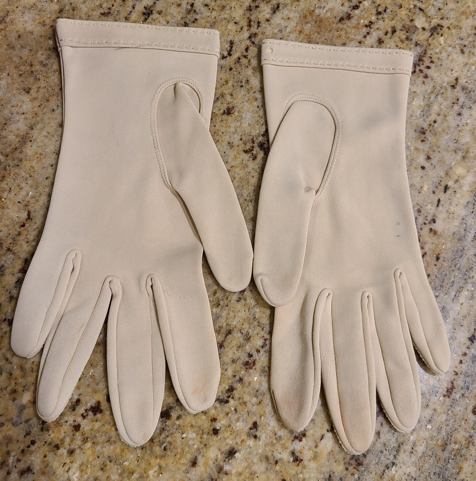 Vintage Size L 7 Biege Nylon Stretch Formal 9 Gloves Wrist Accent