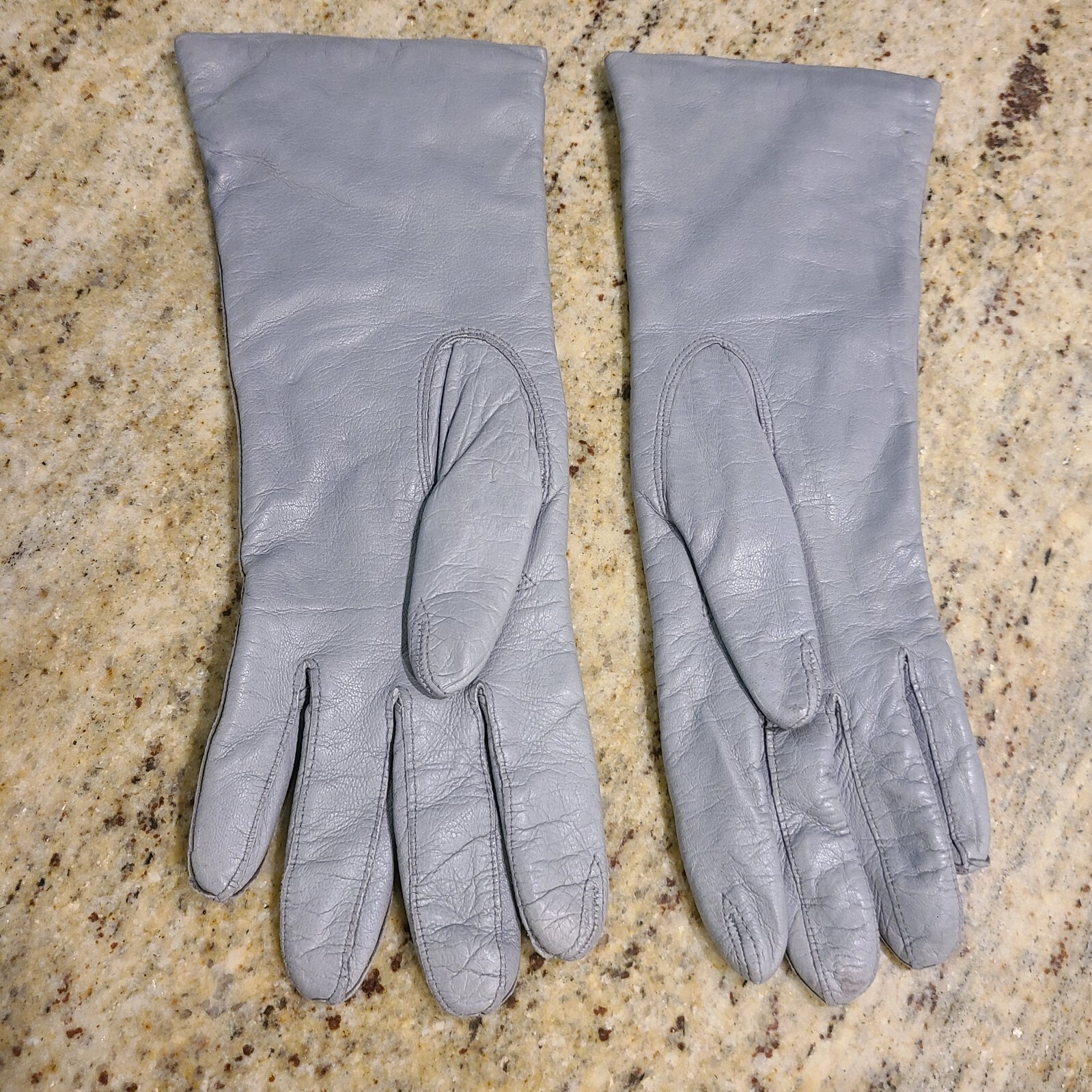 как выглядит Vintage Size S/M 6.5 Gray 11" Soft Leather Gloves Knit Lined Formal фото