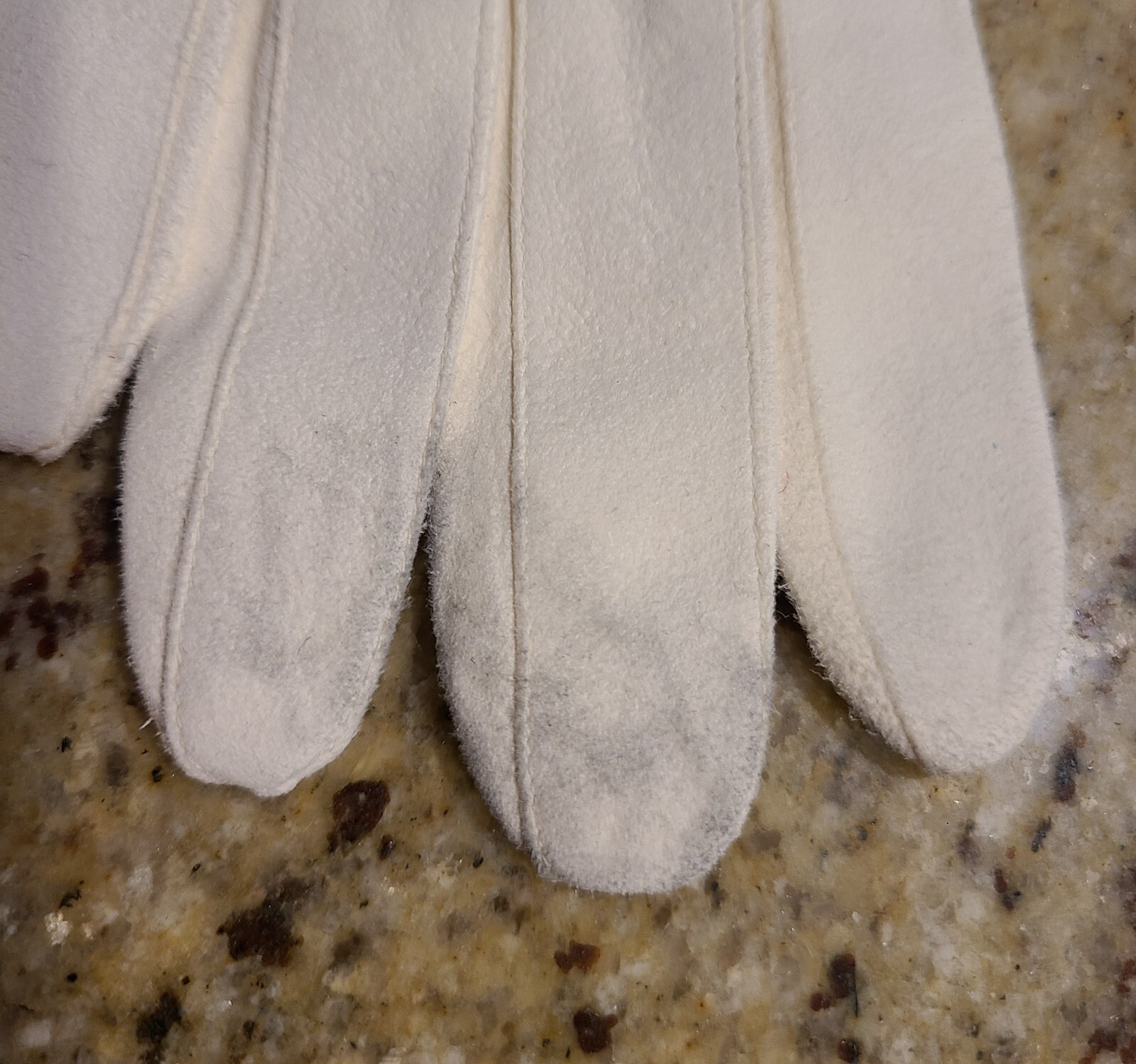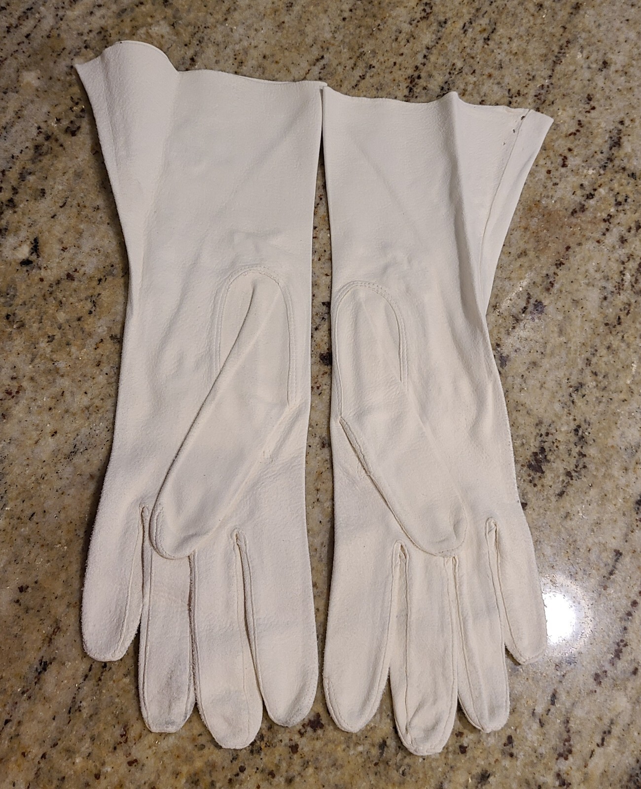 как выглядит Vtg Womens Size L Off-White Thin Suede Formal 11" Long Gloves Beaded Leaf фото