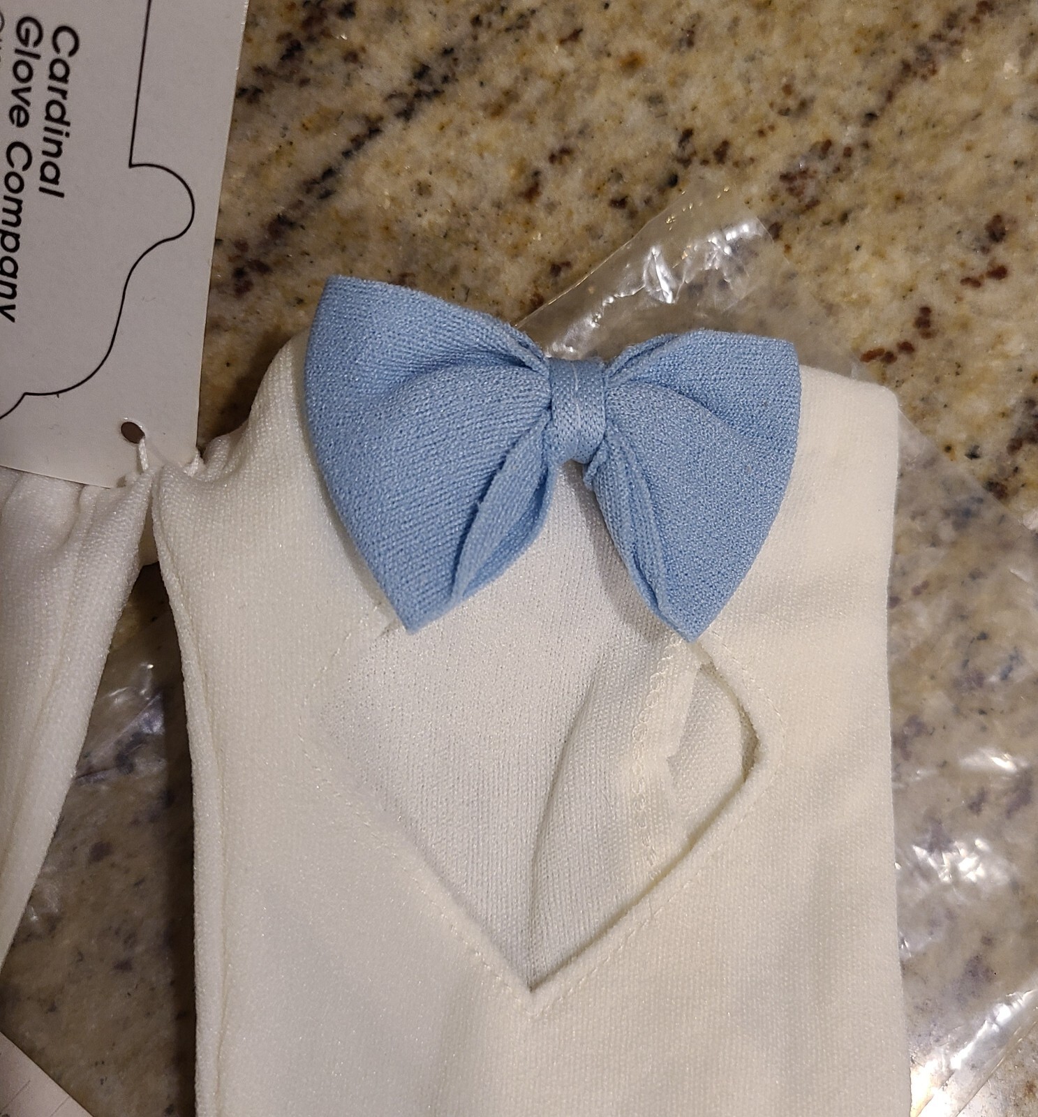 как выглядит New Vintage One Size Fits All Stretch Nylon 8" Gloves White Blue Bow Peekaboo фото