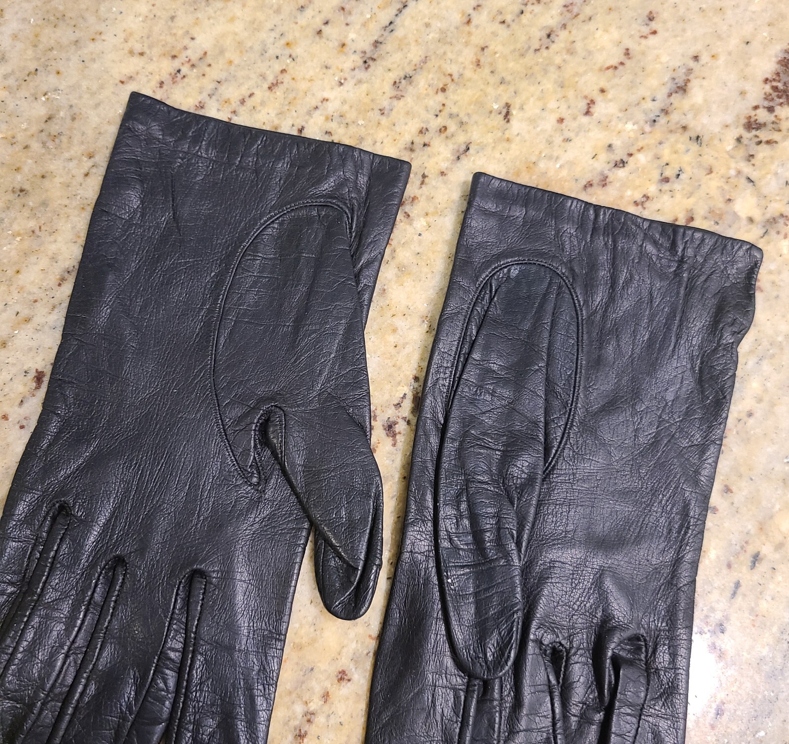 как выглядит Vintage Size M 7 Soft Black Leather 8" Gloves Lined Miss Aris фото