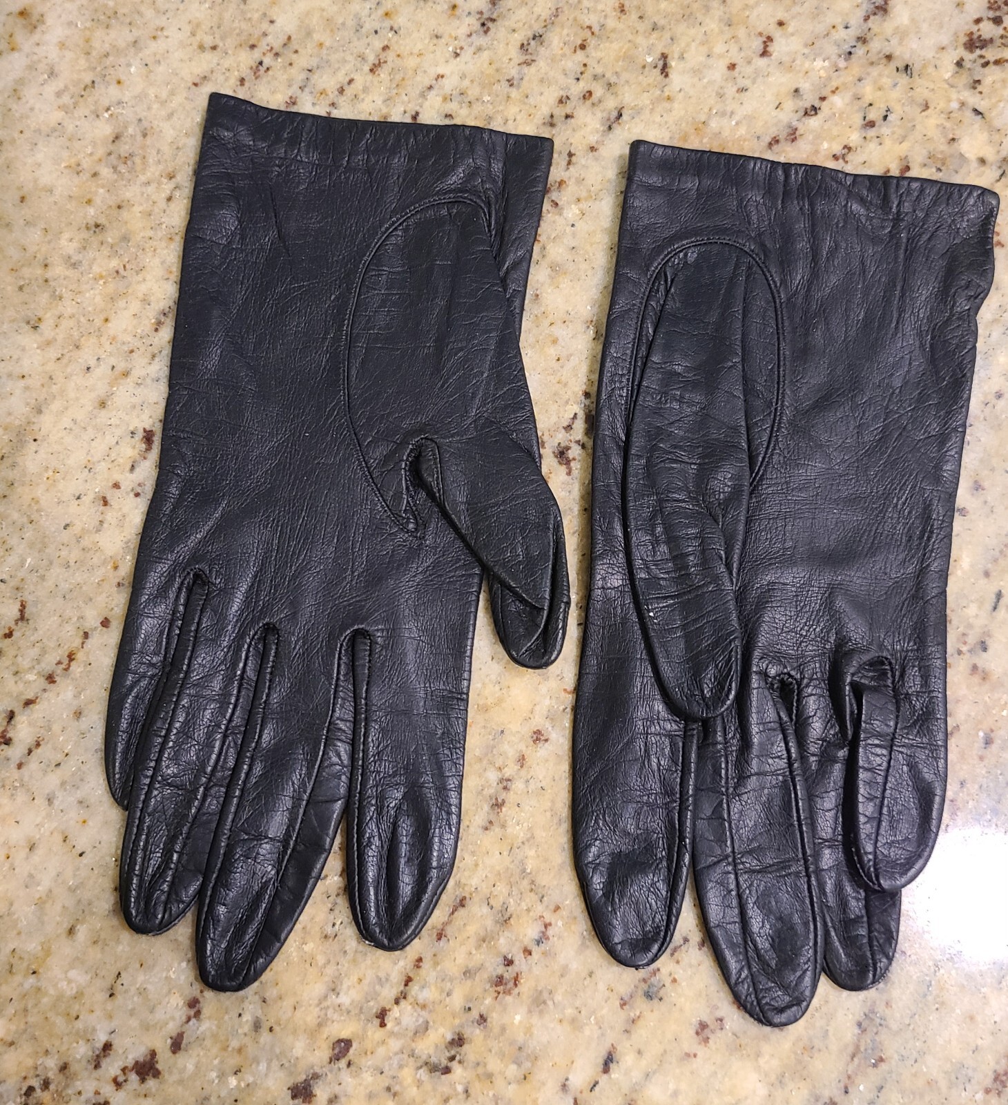 Vintage Size M 7 Soft Black Leather 8 Gloves Lined Miss Aris