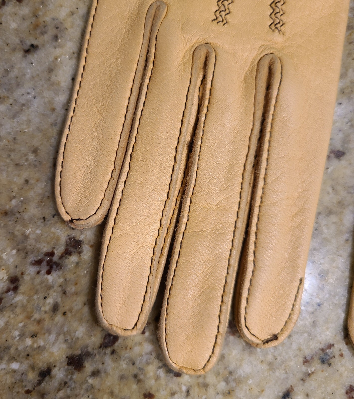 Vintage Size S 7 1/4 Tan Soft Deerskin Leather 9.5 Long Gloves Stitching Detail