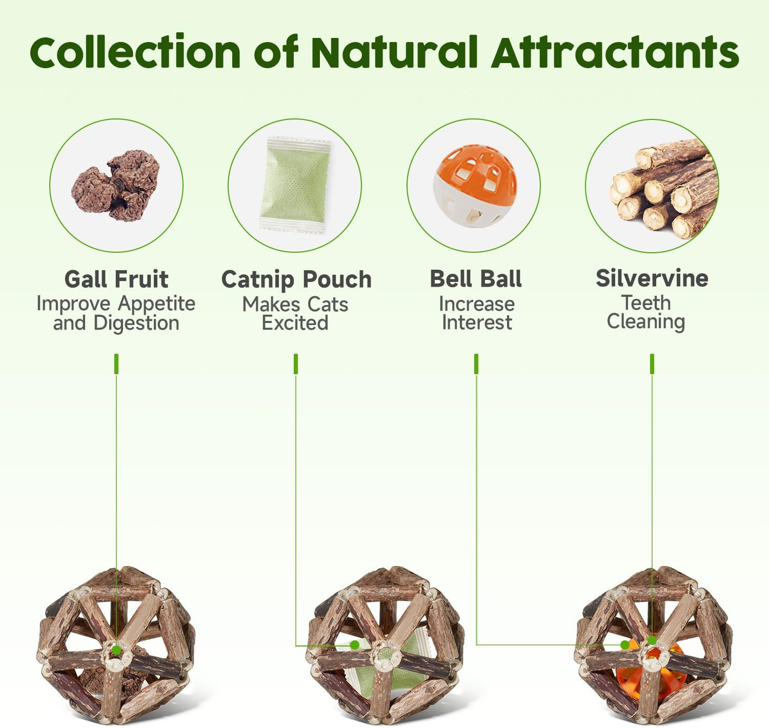 как выглядит Catnip Toy Set - 3 Pcs Natural Silvervine Sticks, Balls Bell for Indoor Cats фото