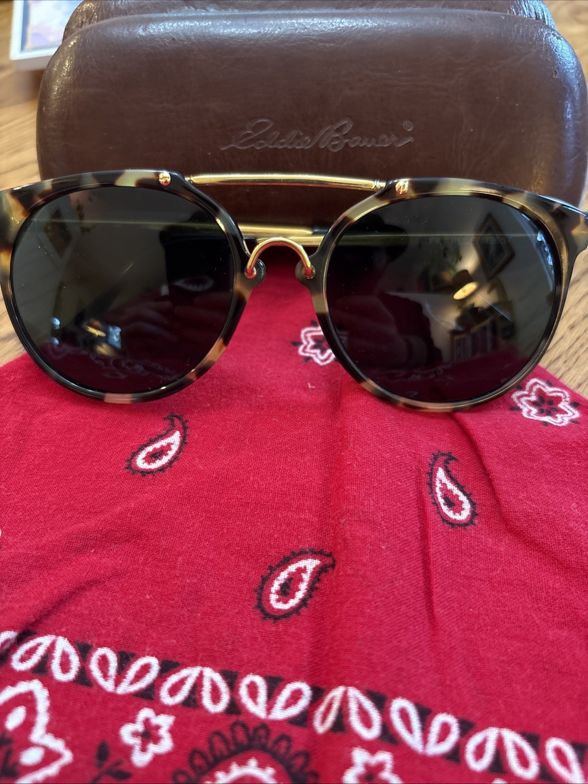 как выглядит Vintage Eddie Bauer Tortoise Shell Brown Aviator Sunglasses Metal Frames Case фото