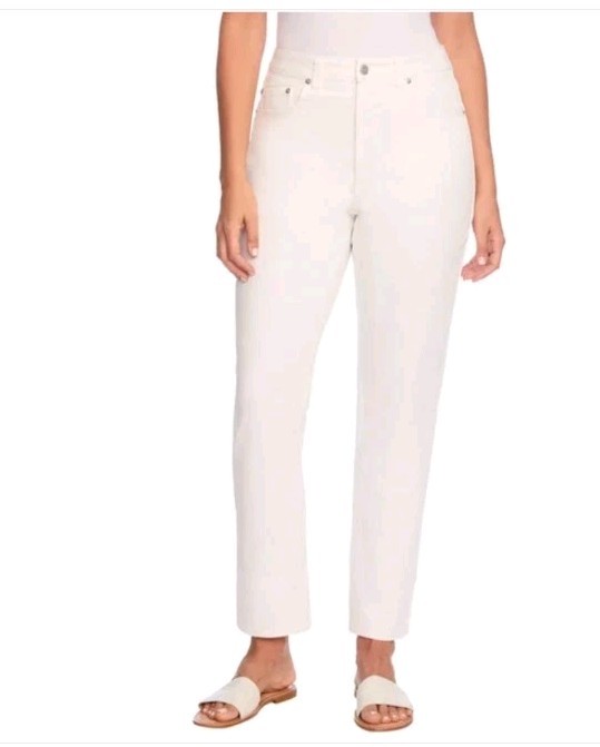 как выглядит Frye High-Rise Crop Jeans Cuffed Hem Ivory Denim Women