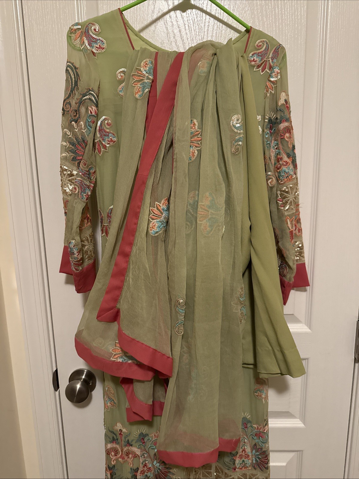 Shalwar Kameez 3 Piece Women s Pakistani Indian Green Pink Paisley 36 Inch Chest