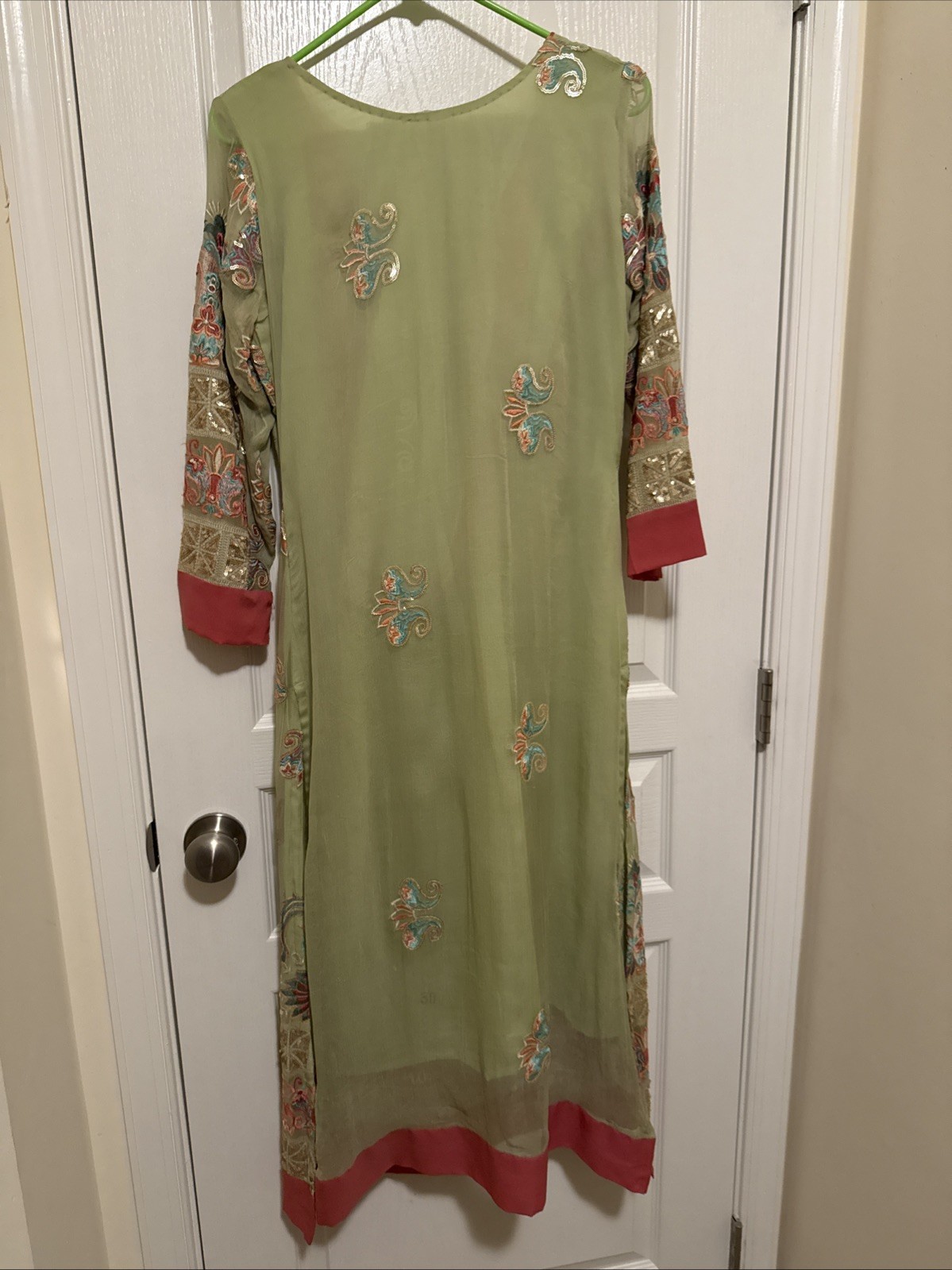 как выглядит Shalwar Kameez 3 Piece Women s Pakistani Indian Green Pink Paisley 36 Inch Chest фото