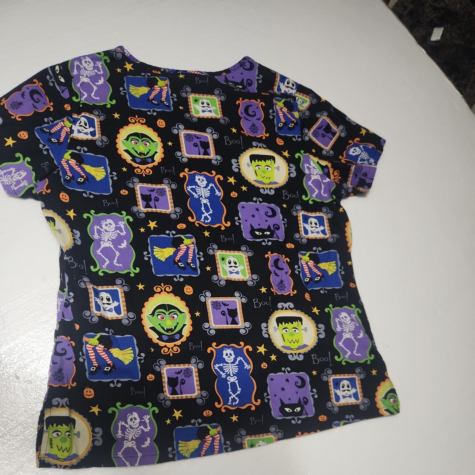 как выглядит SB SCRUBS Scrub Top size M -Black HALLOWEEN Spooky/Ghost/Cat/ Skeleton фото
