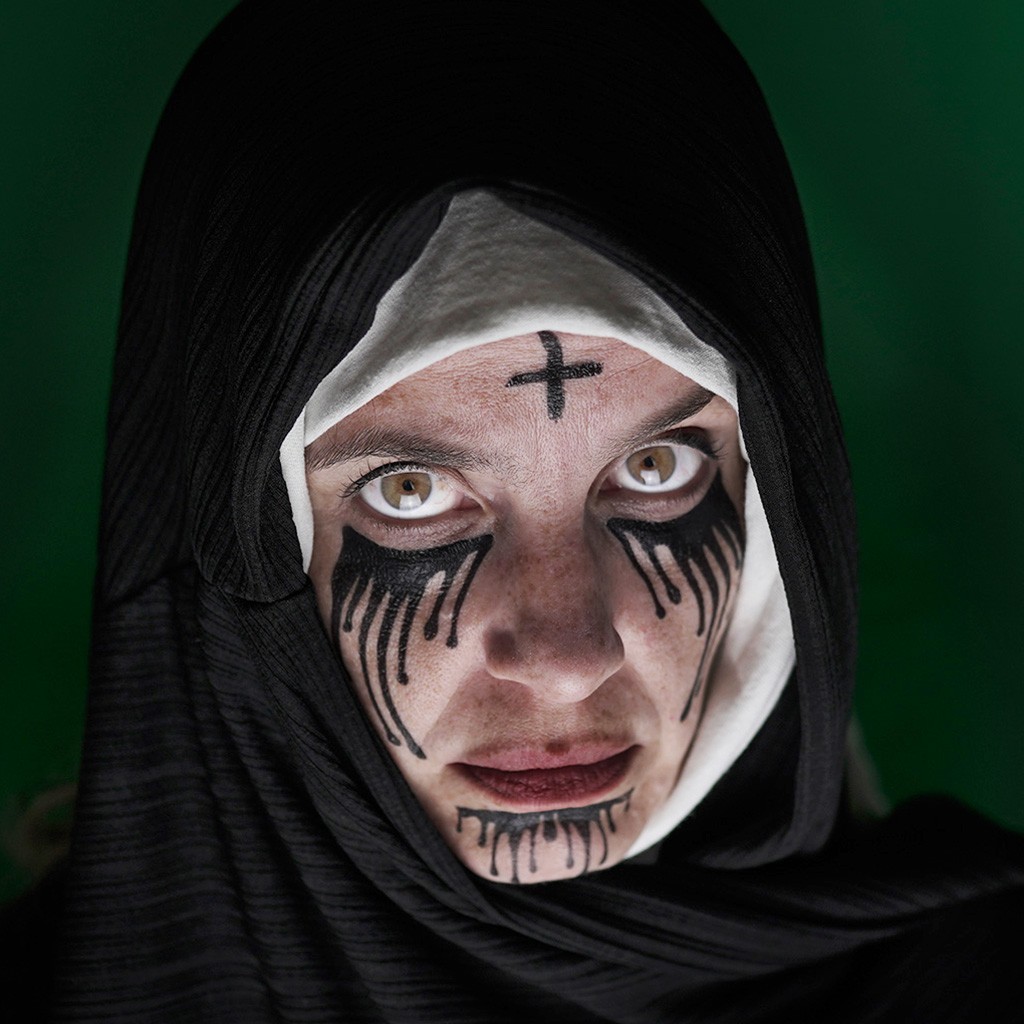 как выглядит Scary Nun Tattoo Set - Nun Temporary Tattoos / Scary Nun Face Makeup Tattoos фото