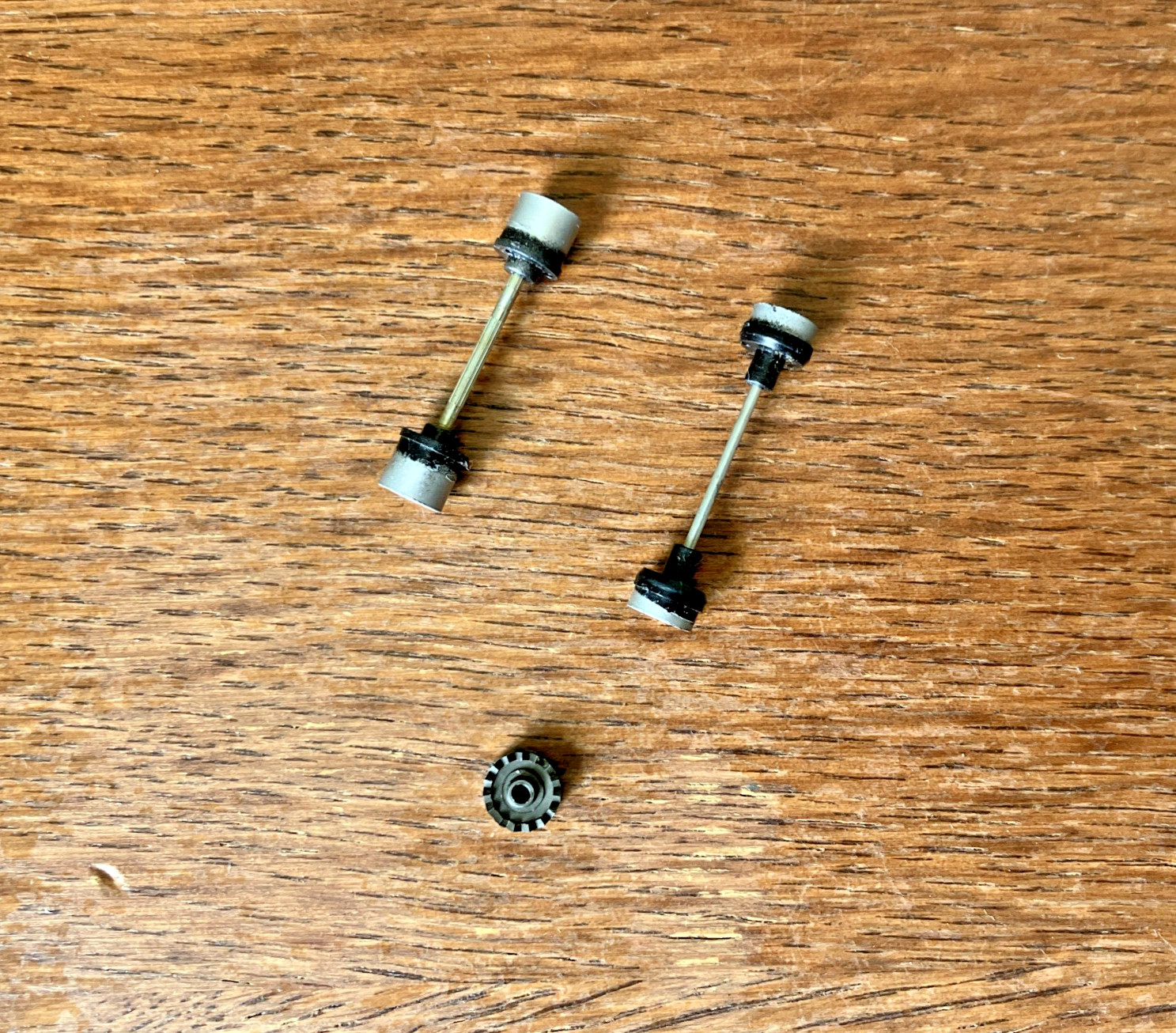 как выглядит NMINT AFX NonMT Axles w/5 Spoke Wheels w/2nd Gen Thicker Front Axles, Crown Gear фото