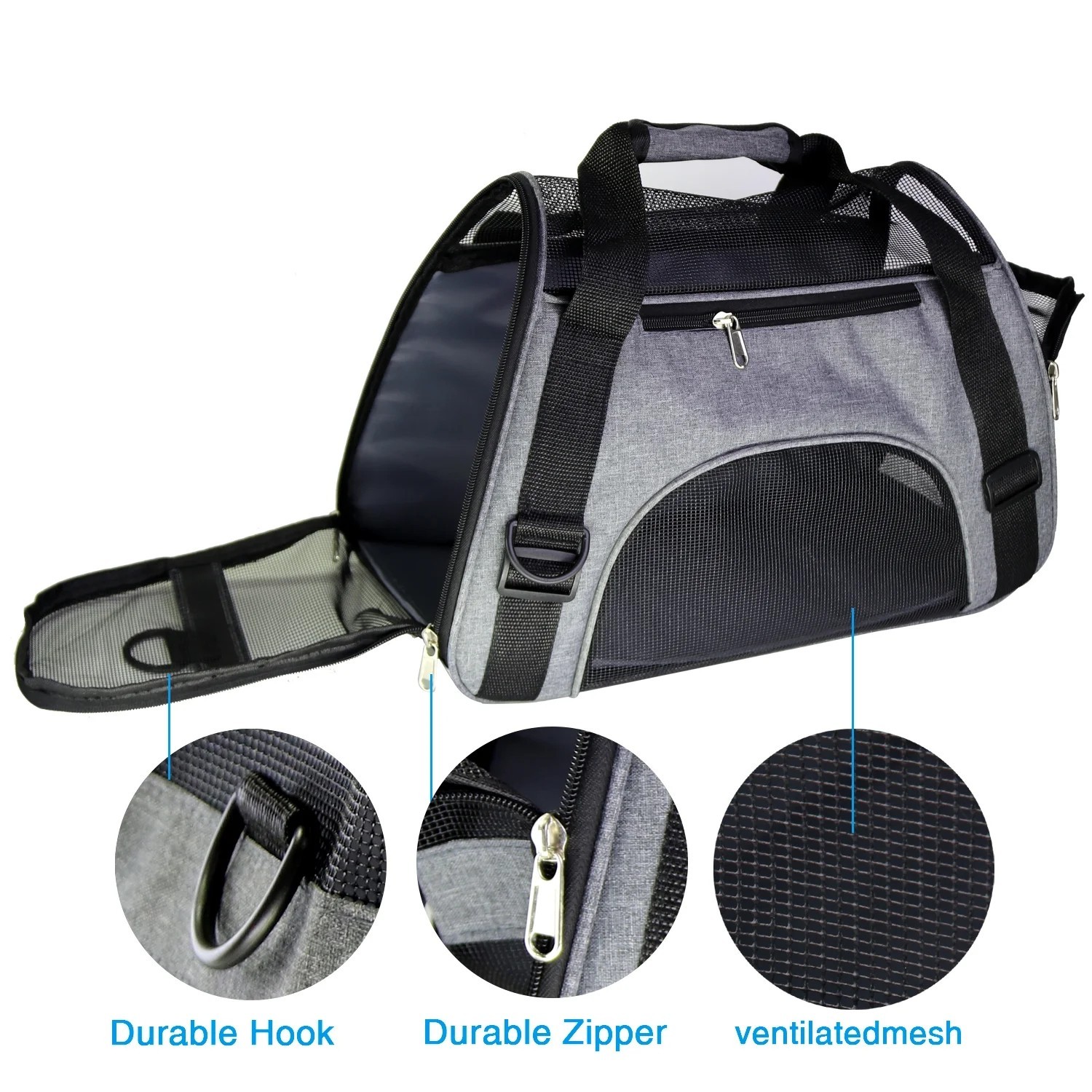 Small Gray Dog Cat Bed Pet House Portable Travel Hand Carry Airline Approved