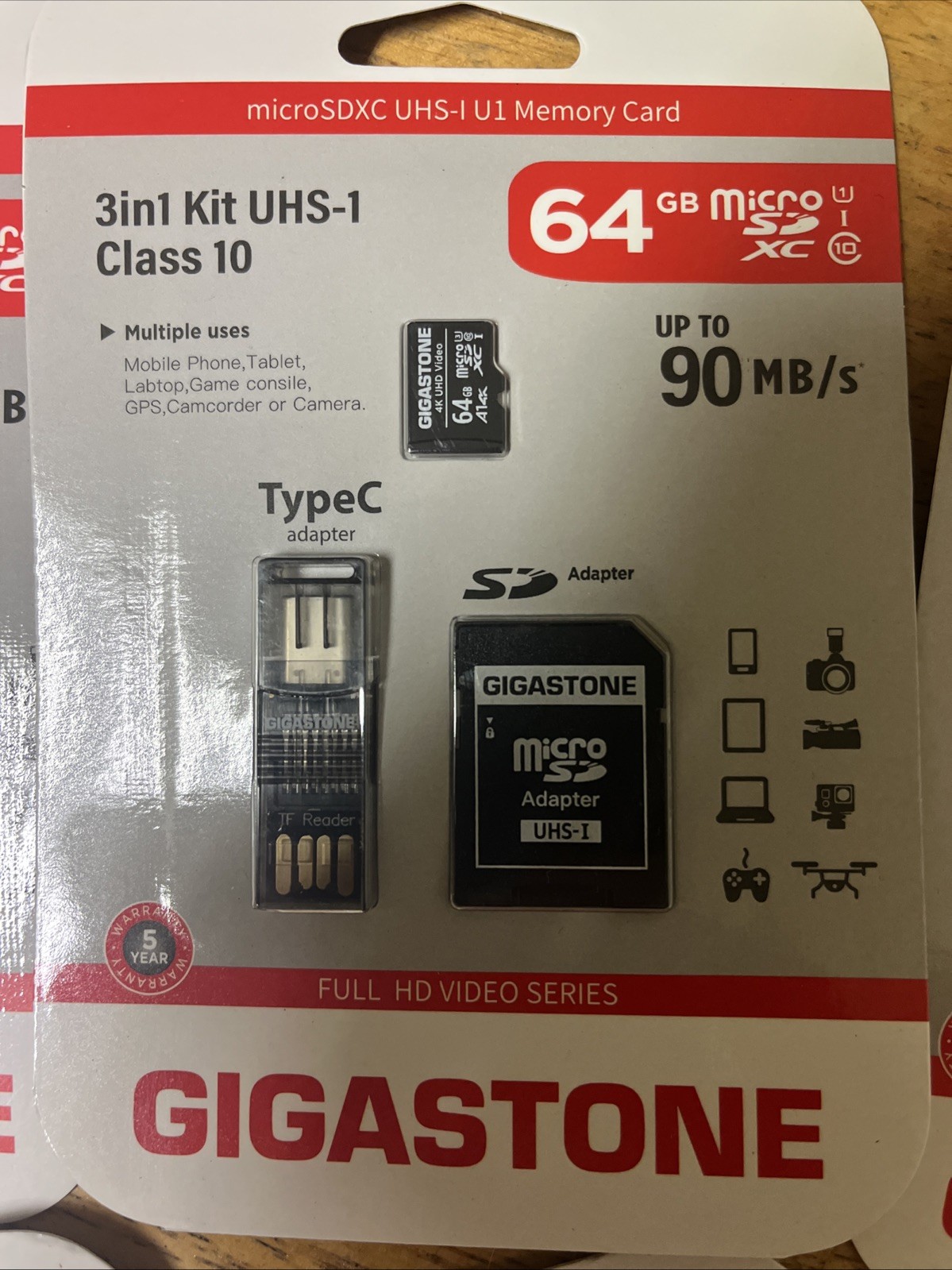 64GB MICRO SD CARD 3 In 1 Kit Class 10 Memory Card/Adapter/typeC Adapter
