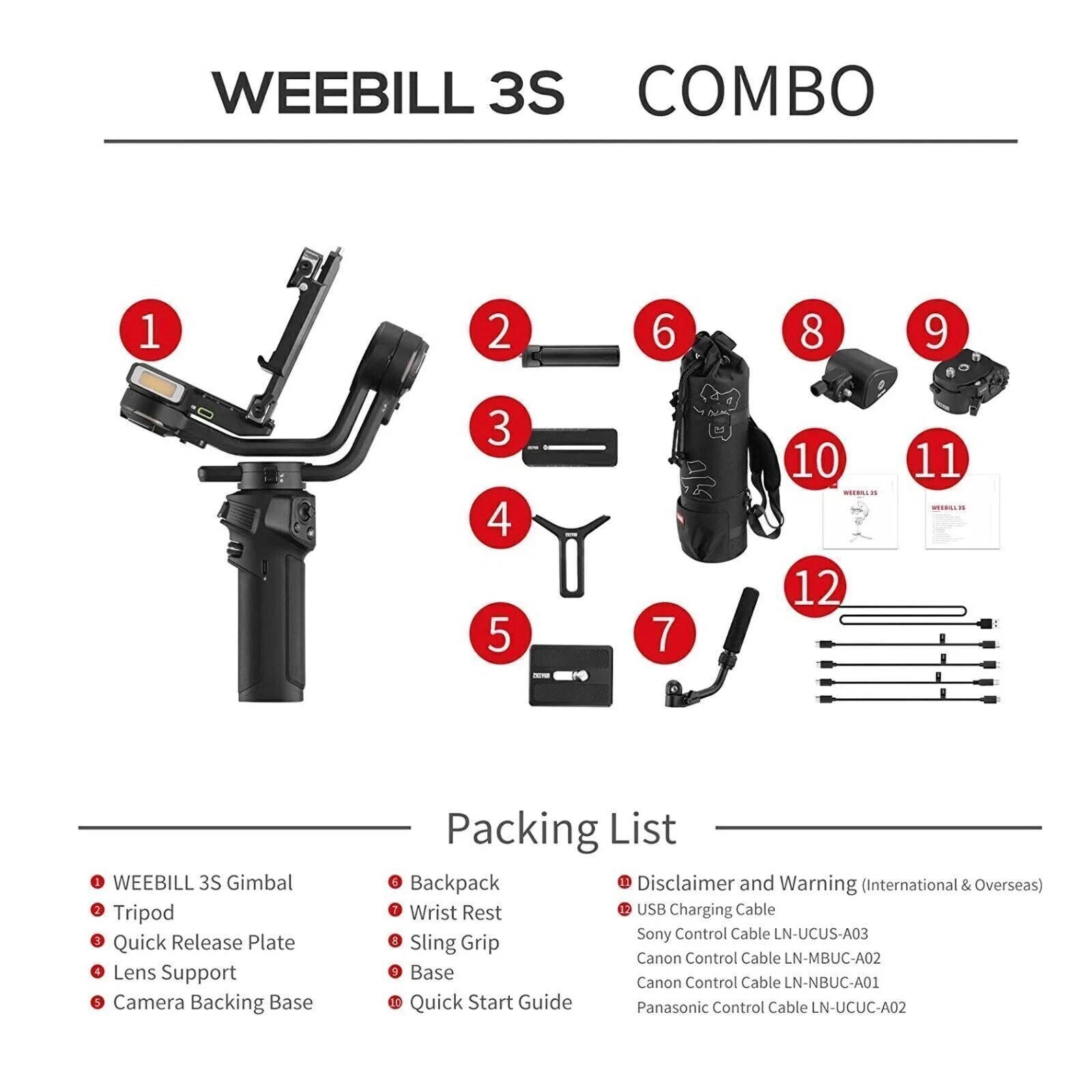 Zhiyun Weebill 3S Combo Kit 3-Axis Gimbal Stabilizer for Mirrorless Cameras